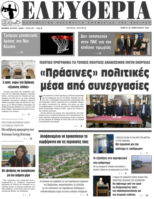 ΑρχικήTOP STORIES TOP STORIESΗΠΕΙΡΟΣ Τα πρωτοσέλιδα των γιαννιώτικων εφημερίδων 24.02.2022 170 FacebookTwitterWhatsAppEmailΤυπώνωViber Διαβάστε στα πρωτοσέλιδα των γιαννιώτικων εφημερίδων της Πέμπτης 24 Φεβρουαρίου TagsΓΙΑΝΝΙΩΤΙΚΕΣ ΕΦΗΜΕΡΙΔΕΣΠΡΩΤΟΣΕΛΙΔΑ FacebookTwitterWhatsAppEmailΤυπώνωViber Προηγούμενο άρθροΔίπλωμα οδήγησης: Οι υποψήφιοι θα εκπαιδεύονται υποχρεωτικά και στην τοποθέτηση αντιολισθητικών αλυσίδωνΕπόμενο άρθροΜ. Ελισάφ: Με προσοχή και όχι απότομα η «χαλάρωση» ΣΧΕΤΙΚΑ ΑΡΘΡΑ Τα πρωτοσέλιδα των γιαννιώτικων εφημερίδων TOP STORIES 28.11.2025 Τα πρωτοσέλιδα των γιαννιώτικων εφημερίδων ΗΠΕΙΡΟΣ 27.11.2025 Τα πρωτοσέλιδα των γιαννιώτικων εφημερίδων ΗΠΕΙΡΟΣ 26.11.2025 Τα πρωτοσέλιδα των γιαννιώτικων εφημερίδων ΗΠΕΙΡΟΣ 25.11.2025 Τα πρωτοσέλιδα των γιαννιώτικων εφημερίδων ΗΠΕΙΡΟΣ 22.11.2025 Τα πρωτοσέλιδα των γιαννιώτικων εφημερίδων ΗΠΕΙΡΟΣ 21.11.2025 ΣΤΗΝ ΙΔΙΑ ΚΑΤΗΓΟΡΙΑ Διαγωνισμός για έργα ενεργειακής αναβάθμισης στο ΠΓΝΙ ΗΠΕΙΡΟΣ 28.11.2025 Εισροή νερού σε δύο χειρουργικές αίθουσες στο νοσοκομείο «Χατζηκώστα» ΗΠΕΙΡΟΣ 28.11.2025 Άρτα: Αλλοδαπός έκλεψε 850 ευρώ από ηλικιωμένο ΗΠΕΙΡΟΣ 28.11.2025 Σήμερα η «Black Friday»: Τι πρέπει να προσέξετε στις αγορές σας TOP STORIES 28.11.2025 Κοινός τόπος η ανάγκη εξάλειψης της βίας κατά των γυναικών ΗΠΕΙΡΟΣ 28.11.2025 Νέες κατολισθήσεις στα Τζουμέρκα μετά την κακοκαιρία ΗΠΕΙΡΟΣ 28.11.2025 ΜΗ ΧΑΣΕΤΕ Σήμερα η επιστροφή ενοικίου στους δικαιούχους Σήμερα η «Black Friday»: Τι πρέπει να προσέξετε στις αγορές σας Νέες κατολισθήσεις στα Τζουμέρκα μετά την κακοκαιρία Εμφανίστηκε ξανά η εποχική λίμνη Βρέλλη Επιδόματα και προσλήψεις στο συνέδριο δικαστικών υπαλλήλων ΔΗΜΟΦΙΛΗ Χονγκ Κονγκ: Στους 128 ανέρχονται οι νεκροί – Οργή για τη φονικότερη πυρκαγιά των τελευταίων 70 ετών Διαγωνισμός για έργα ενεργειακής αναβάθμισης στο ΠΓΝΙ Προφυλακιστέα η 46χρονη φερόμενη ως πεθεροκτόνος Telegraph: Ο Τραμπ έτοιμος να αναγνωρίσει κατεχόμενα ουκρανικά εδάφη ως ρωσικά Πρωτόγνωρες εικόνες από την κακοκαιρία Adel: Επιβάτες του ΗΣΑΠ σε καρότσα