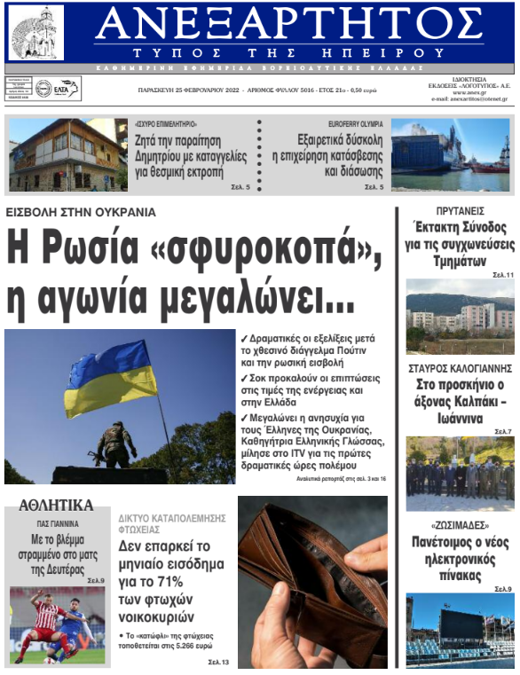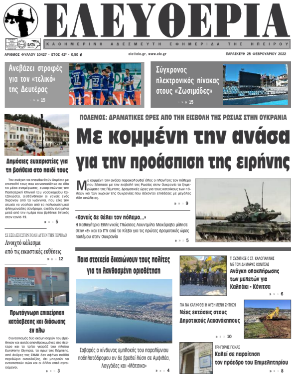Διαβάστε στα πρωτοσέλιδα των γιαννιώτικων εφημερίδων της Παρασκευής 25 Φεβρουαρίου