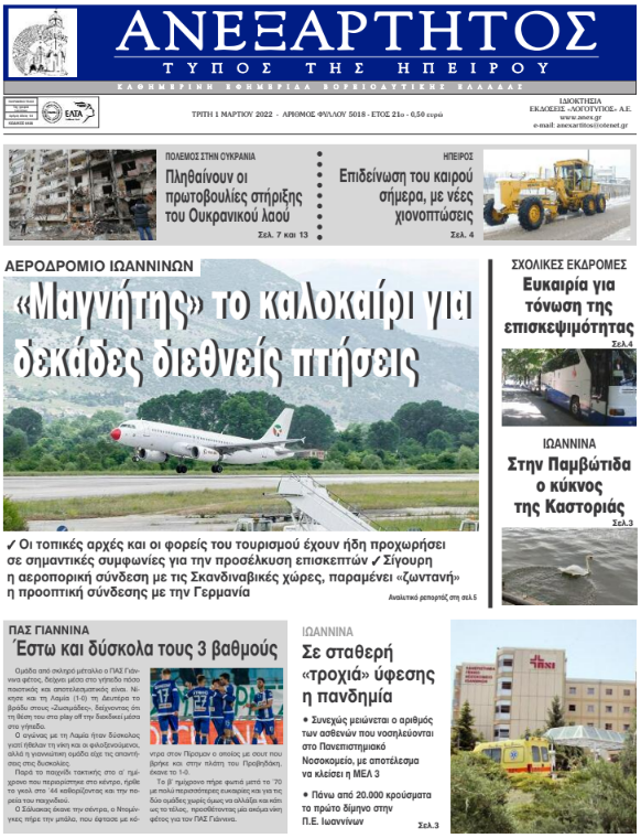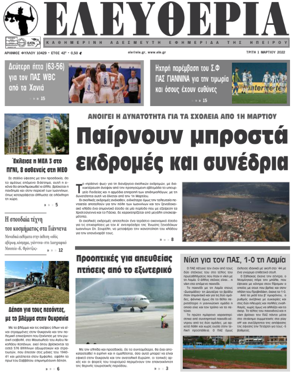 ΑρχικήΕΙΔΗΣΕΙΣΗΠΕΙΡΟΣ ΗΠΕΙΡΟΣ Τα πρωτοσέλιδα των γιαννιώτικων εφημερίδων 01.03.2022 157 FacebookTwitterWhatsAppEmailΤυπώνωViber Διαβάστε στα πρωτοσέλιδα των γιαννιώτικων εφημερίδων της Τρίτης 1 Μαρτίου TagsΓΙΑΝΝΙΩΤΙΚΕΣ ΕΦΗΜΕΡΙΔΕΣΠΡΩΤΟΣΕΛΙΔΑ FacebookTwitterWhatsAppEmailΤυπώνωViber Προηγούμενο άρθρο1-0 τη Λαμία και ένα ακόμα τρίποντο για τον ΠΑΣΕπόμενο άρθροΠροοπτικές για απευθείας πτήσεις από το εξωτερικό ΣΧΕΤΙΚΑ ΑΡΘΡΑ Τα πρωτοσέλιδα των γιαννιώτικων εφημερίδων TOP STORIES 15.11.2025 Τα πρωτοσέλιδα των γιαννιώτικων εφημερίδων ΗΠΕΙΡΟΣ 14.11.2025 Τα πρωτοσέλιδα των γιαννιώτικων εφημερίδων ΗΠΕΙΡΟΣ 13.11.2025 Τα πρωτοσέλιδα των γιαννιώτικων εφημερίδων ΗΠΕΙΡΟΣ 12.11.2025 Τα πρωτοσέλιδα των γιαννιώτικων εφημερίδων ΗΠΕΙΡΟΣ 11.11.2025 Τα πρωτοσέλιδα των γιαννιώτικων εφημερίδων TOP STORIES 08.11.2025 ΣΤΗΝ ΙΔΙΑ ΚΑΤΗΓΟΡΙΑ Ένας ζωντανός καθρέφτης της παράδοσης με βλέμμα στο μέλλον ΗΠΕΙΡΟΣ 15.11.2025 Μαθηματική έρευνα και κριτική σκέψη στην εποχή της Τεχνητής Νοημοσύνης ΗΠΕΙΡΟΣ 15.11.2025 Τα πρωτοσέλιδα των γιαννιώτικων εφημερίδων TOP STORIES 15.11.2025 ΑΠΟ ΤΗΝ ΠΕΡΙΦΕΡΕΙΑ -Συστάσεις λόγω υψηλών συγκεντρώσεων αιωρούμενων σωματιδίων ΗΠΕΙΡΟΣ 15.11.2025 Εκλογή του Παναγιώτη Σουκάκου στην Ακαδημία Αθηνών ΗΠΕΙΡΟΣ 14.11.2025 Εντυπωσιακό το αποτέλεσμα της αναστήλωσης στο τζαμί Καλούτσανης ΗΠΕΙΡΟΣ 14.11.2025 ΜΗ ΧΑΣΕΤΕ Ένας ζωντανός καθρέφτης της παράδοσης με βλέμμα στο μέλλον Μαθηματική έρευνα και κριτική σκέψη στην εποχή της Τεχνητής Νοημοσύνης Τα πρωτοσέλιδα των γιαννιώτικων εφημερίδων Εντυπωσιακό το αποτέλεσμα της αναστήλωσης στο τζαμί Καλούτσανης Ενιαίο αστικό πάρκο στις παλιές στρατιωτικές φυλακές ΔΗΜΟΦΙΛΗ Μαθηματική έρευνα και κριτική σκέψη στην εποχή της Τεχνητής Νοημοσύνης Ο «χάρτης» των πληρωμών από e-ΕΦΚΑ, ΔΥΠΑ από 17 έως 21 Νοεμβρίου Σε έναν γύρο οι τοπικές εκλογές Πάνω από 50 αγελάδες πέθαναν σε πλοίο που τις μετέφερε στην Τουρκία Έρχεται θερμή εισβολή με σκόνη και υψηλές θερμοκρασίες