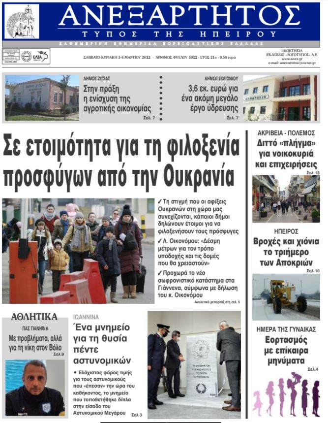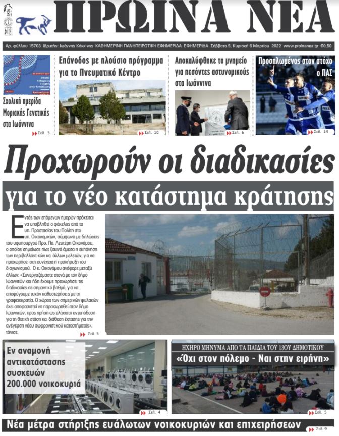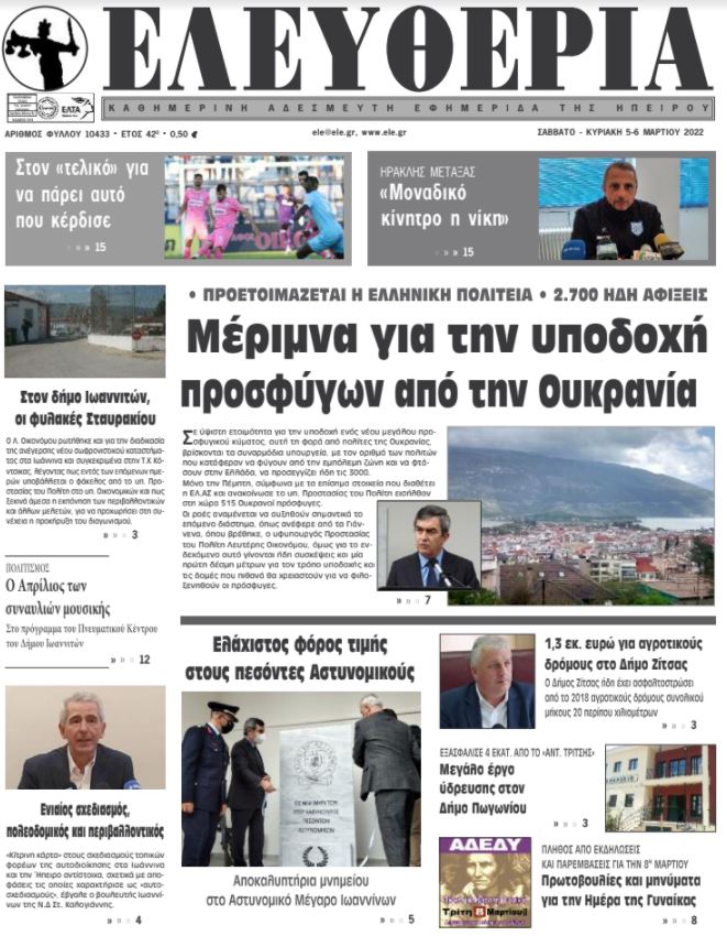 ΑρχικήΕΙΔΗΣΕΙΣΗΠΕΙΡΟΣ ΗΠΕΙΡΟΣ Τα πρωτοσέλιδα των γιαννιώτικων εφημερίδων 05.03.2022 121 FacebookTwitterWhatsAppEmailΤυπώνωViber Διαβάστε στα πρωτοσέλιδα των γιαννιώτικων εφημερίδων 5-8 Μαρτίου TagsΓΙΑΝΝΙΩΤΙΚΕΣ ΕΦΗΜΕΡΙΔΕΣΠΡΩΤΟΣΕΛΙΔΑ FacebookTwitterWhatsAppEmailΤυπώνωViber Προηγούμενο άρθρο«Όχι στον πόλεμο-Ναι στην ειρήνη»Επόμενο άρθροΣτον δήμο Ιωαννιτών, οι φυλακές Σταυρακίου ΣΧΕΤΙΚΑ ΑΡΘΡΑ Τα πρωτοσέλιδα των γιαννιώτικων εφημερίδων ΗΠΕΙΡΟΣ 12.11.2025 Τα πρωτοσέλιδα των γιαννιώτικων εφημερίδων ΗΠΕΙΡΟΣ 11.11.2025 Τα πρωτοσέλιδα των γιαννιώτικων εφημερίδων TOP STORIES 08.11.2025 Τα πρωτοσέλιδα των γιαννιώτικων εφημερίδων ΗΠΕΙΡΟΣ 07.11.2025 Τα πρωτοσέλιδα των γιαννιώτικων εφημερίδων ΗΠΕΙΡΟΣ 06.11.2025 Τα πρωτοσέλιδα των γιαννιώτικων εφημερίδων ΗΠΕΙΡΟΣ 05.11.2025 ΣΤΗΝ ΙΔΙΑ ΚΑΤΗΓΟΡΙΑ Τα έργα στο δασύλλιο στο στόχαστρο της ΕΔΕΛ ΗΠΕΙΡΟΣ 12.11.2025 Φιλιππιάδα: Ξεκίνησε η διαχείριση των ζωικών αποβλήτων από την Κέρκυρα TOP STORIES 12.11.2025 Στρατηγικό εργαλείο για τη βιώσιμη ανάπτυξη το ΤΠΣ Βορείων Τζουμέρκων ΗΠΕΙΡΟΣ 12.11.2025 Τα πρωτοσέλιδα των γιαννιώτικων εφημερίδων ΗΠΕΙΡΟΣ 12.11.2025 Ενημερωτική δράση για τον σακχαρώδη διαβήτη στα Ιωάννινα ΗΠΕΙΡΟΣ 11.11.2025 Συνελήφθη αλλοδαπός διωκόμενος στην Κακαβιά ΗΠΕΙΡΟΣ 11.11.2025 ΜΗ ΧΑΣΕΤΕ Τα έργα στο δασύλλιο στο στόχαστρο της ΕΔΕΛ Φιλιππιάδα: Ξεκίνησε η διαχείριση των ζωικών αποβλήτων από την Κέρκυρα Εντυπωσιακή αύξηση στις δωρεές οργάνων και μεταμοσχεύσεις στην Ελλάδα Συμβαδίζει με την κεντρική «γραμμή» ο ΣΥΡΙΖΑ Ιωαννίνων Επί τάπητος υποδομές, περιβάλλον και ΤΠΣ ΔΗΜΟΦΙΛΗ Προσλήψεις αναπληρωτών: Ανακοινώθηκαν οι πίνακες με τα ονόματα Μητσοτάκης: Ακολουθούμε την Κύπρο στα θέματα των γεωτρήσεων Ψηφίστηκε ο προϋπολογισμός της Βουλής του 2026 Τα έργα στο δασύλλιο στο στόχαστρο της ΕΔΕΛ Μαρουσάκης: Εν αναμονή νέου βαρομετρικού χαμηλού και βαρυχειμωνιάς την επόμενη εβδομάδα