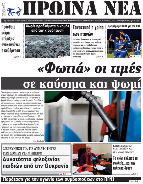 Διαβάστε στα πρωτοσέλιδα των γιαννιώτικων εφημερίδων της Πέμπτης 10 Μαρτίου