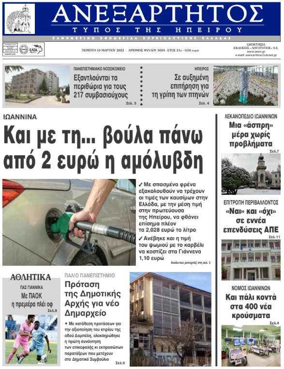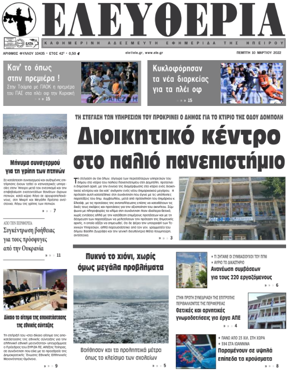 Διαβάστε στα πρωτοσέλιδα των γιαννιώτικων εφημερίδων της Πέμπτης 10 Μαρτίου