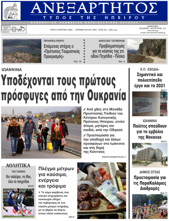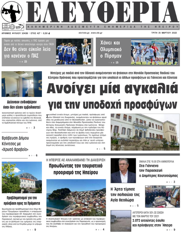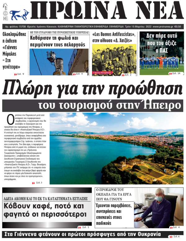 Διαβάστε στα πρωτοσέλιδα των γιαννιώτικων εφημερίδων της Τρίτης 15 Μαρτίου