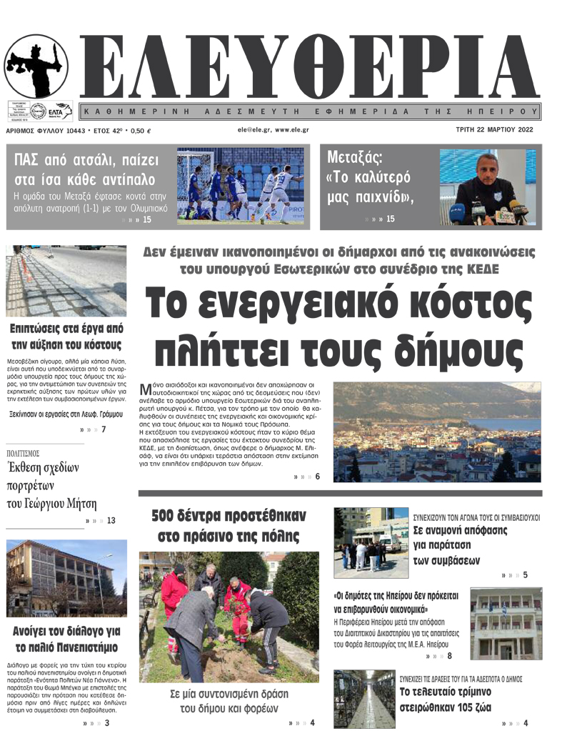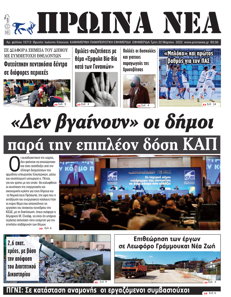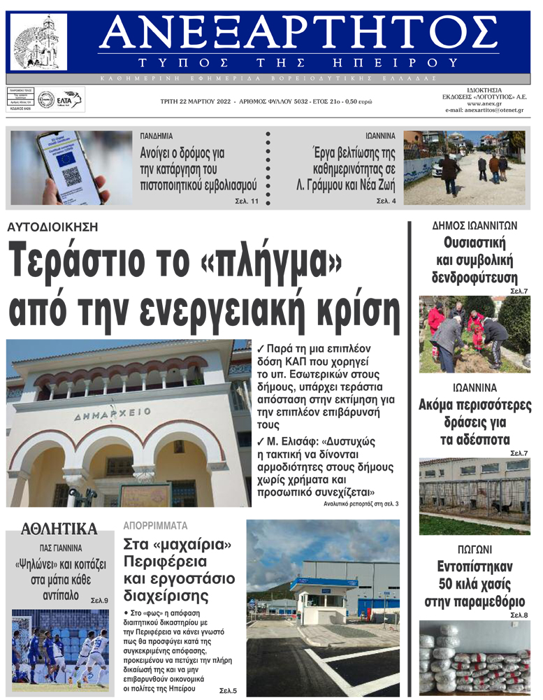 Διαβάστε στα πρωτοσέλιδα των γιαννιώτικων εφημερίδων της Τρίτης 22 Μαρτίου