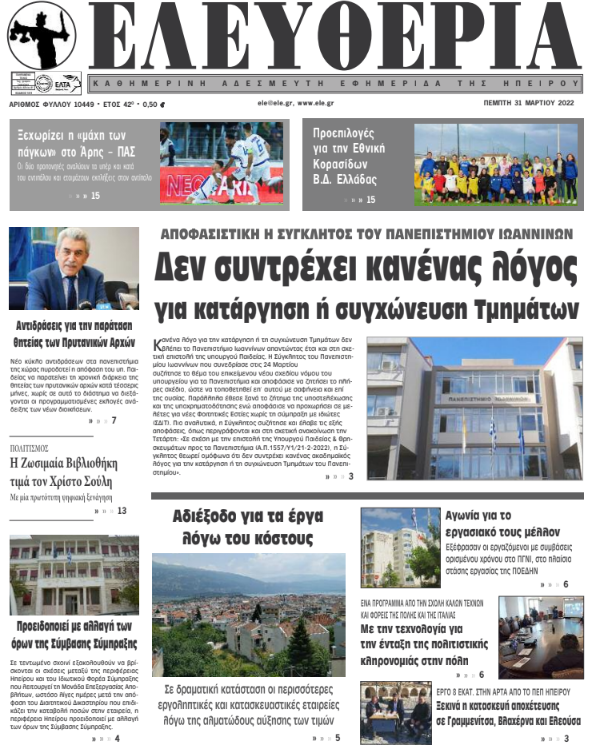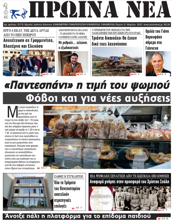 Διαβάστε στα πρωτοσέλιδα των γιαννιώτικων εφημερίδων της Πέμπτης 31 Μαρτίου