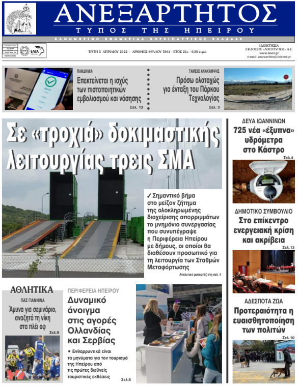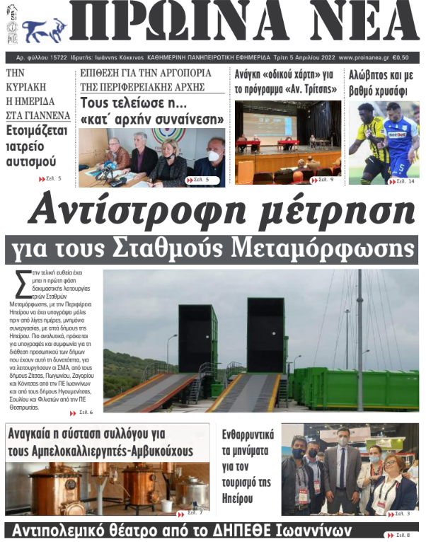 ΑρχικήΕΙΔΗΣΕΙΣΗΠΕΙΡΟΣ ΗΠΕΙΡΟΣ Τα πρωτοσέλιδα των γιαννιώτικων εφημερίδων 05.04.2022 115 FacebookTwitterWhatsAppEmailΤυπώνωViber Διαβάστε στα πρωτοσέλιδα των γιαννιώτικων εφημερίδων της Τρίτης 5 Απριλίου TagsΓΙΑΝΝΙΩΤΙΚΕΣ ΕΦΗΜΕΡΙΔΕΣΠΡΩΤΟΣΕΛΙΔΑ FacebookTwitterWhatsAppEmailΤυπώνωViber Προηγούμενο άρθροΠρωτοβάθμια Φροντίδα Υγείας: Οι 14 αλλαγές που περιλαμβάνονται στο νομοσχέδιοΕπόμενο άρθροΕυαισθητοποίηση στην προστασία των ζώων ΣΧΕΤΙΚΑ ΑΡΘΡΑ Τα πρωτοσέλιδα των γιαννιώτικων εφημερίδων TOP STORIES 01.11.2025 Τα πρωτοσέλιδα των γιαννιώτικων εφημερίδων ΗΠΕΙΡΟΣ 31.10.2025 Τα πρωτοσέλιδα των γιαννιώτικων εφημερίδων ΗΠΕΙΡΟΣ 30.10.2025 Τα πρωτοσέλιδα των γιαννιώτικων εφημερίδων ΗΠΕΙΡΟΣ 28.10.2025 Τα πρωτοσέλιδα των γιαννιώτικων εφημερίδων ΗΠΕΙΡΟΣ 25.10.2025 Τα πρωτοσέλιδα των γιαννιώτικων εφημερίδων ΗΠΕΙΡΟΣ 24.10.2025 ΣΤΗΝ ΙΔΙΑ ΚΑΤΗΓΟΡΙΑ Χρυσό μετάλλιο για την ομάδα iGEM Ioannina 2025 στο Παρίσι – Καινοτόμο έργο για τη διάσωση του ελληνικού πλατάνου ΗΠΕΙΡΟΣ 02.11.2025 Λαμπρός εορτασμός για την επέτειο απελευθέρωσης του Μετσόβου ΗΠΕΙΡΟΣ 02.11.2025 Εργασίες σε τμήμα της Ιόνιας Οδού φέρνουν ρυθμίσεις ΗΠΕΙΡΟΣ 02.11.2025 Δεν ήταν τελικά και τόσο απαιτητική κατασκευή… ΗΠΕΙΡΟΣ 01.11.2025 Χριστούγεννα στην πλατεία, που θα ολοκληρωθεί(;) τον Ιούλιο ΗΠΕΙΡΟΣ 01.11.2025 Σύλληψη φυγόποινου στο συνοριακό σημείο ελέγχου Κακαβιάς ΗΠΕΙΡΟΣ 01.11.2025 ΜΗ ΧΑΣΕΤΕ Χρυσό μετάλλιο για την ομάδα iGEM Ioannina 2025 στο Παρίσι – Καινοτόμο έργο για τη διάσωση του ελληνικού πλατάνου Λαμπρός εορτασμός για την επέτειο απελευθέρωσης του Μετσόβου ΕΛΤΑ: Τρίμηνη παράταση για τα καταστήματα της περιφέρειας Χριστούγεννα στην πλατεία, που θα ολοκληρωθεί(;) τον Ιούλιο «Δικαίωση» αλλά οι σκιές έμειναν… ΔΗΜΟΦΙΛΗ Άτυχος ο ΠΑΣ Γιάννινα, έμεινε στο 0-0 με την Καβάλα παρά τα τρία δοκάρια ΤΗ ΔΕΥΤΕΡΑ -Κλείνει προσωρινά η πλατφόρμα Α21 – Επίδομα Παιδιού Σημαντική μείωση στις εκκρεμείς κύριες συντάξεις Εργασίες σε τμήμα της Ιόνιας Οδού φέρνουν ρυθμίσεις ΟΙΚΟΔΟΜΟΤΕΧΝΙΚΑ ΕΡΓΑ -Προσωρινή μη διαθεσιμότητα της ηλεκτρονικής υποβολής Α.Π.Δ.