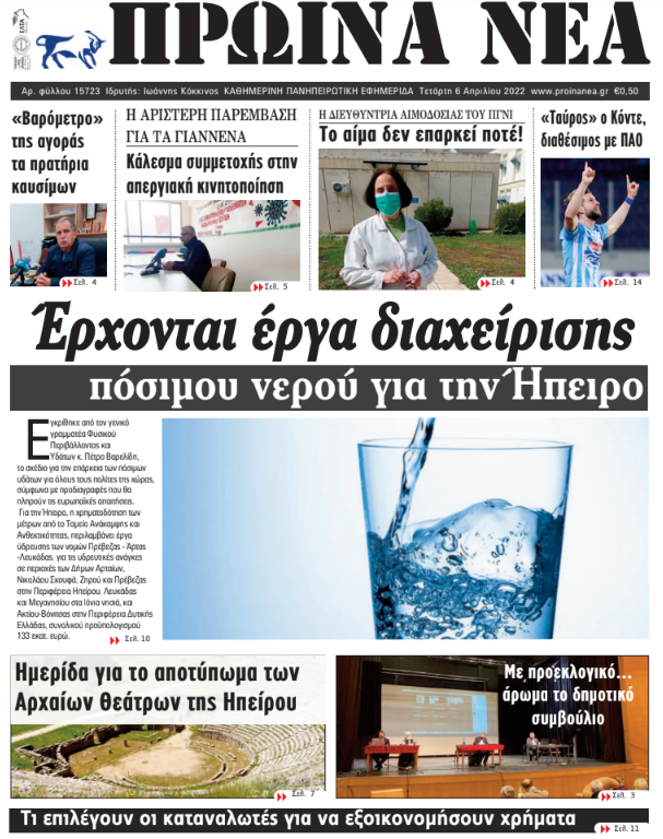 Διαβάστε στα πρωτοσέλιδα των γιαννιώτικων εφημερίδων της Τετάρτης 6 Απριλίου