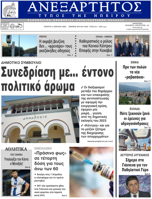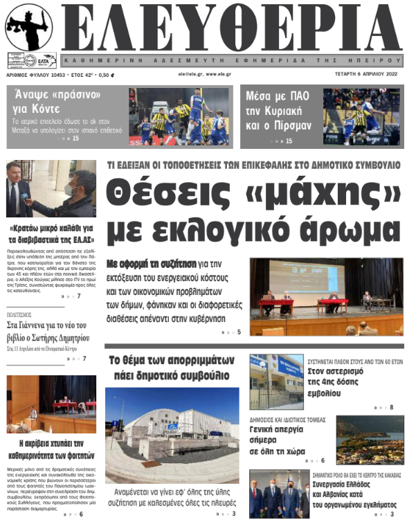 Διαβάστε στα πρωτοσέλιδα των γιαννιώτικων εφημερίδων της Τετάρτης 6 Απριλίου