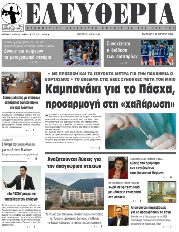 ΑρχικήΕΙΔΗΣΕΙΣΗΠΕΙΡΟΣ ΗΠΕΙΡΟΣ Τα πρωτοσέλιδα των γιαννιώτικων εφημερίδων 15.04.2022 154 FacebookTwitterWhatsAppEmailΤυπώνωViber Διαβάστε στα πρωτοσέλιδα των γιαννιώτικων εφημερίδων της Παρασκευής 15 Απριλίου TagsΓΙΑΝΝΙΩΤΙΚΕΣ ΕΦΗΜΕΡΙΔΕΣΠΡΩΤΟΣΕΛΙΔΑ FacebookTwitterWhatsAppEmailΤυπώνωViber Προηγούμενο άρθροΟριστική δικαίωση για την οικογένεια του 11χρονου που σκοτώθηκε από αδέσποτη σφαίραΕπόμενο άρθρο«Κυνηγεσία 2022» μέρος πρώτο, σήμερα (22.30) στο ITV ΣΧΕΤΙΚΑ ΑΡΘΡΑ Τα πρωτοσέλιδα των γιαννιώτικων εφημερίδων TOP STORIES 11.11.2025 Τα πρωτοσέλιδα των γιαννιώτικων εφημερίδων TOP STORIES 08.11.2025 Τα πρωτοσέλιδα των γιαννιώτικων εφημερίδων ΗΠΕΙΡΟΣ 07.11.2025 Τα πρωτοσέλιδα των γιαννιώτικων εφημερίδων ΗΠΕΙΡΟΣ 06.11.2025 Τα πρωτοσέλιδα των γιαννιώτικων εφημερίδων ΗΠΕΙΡΟΣ 05.11.2025 Τα πρωτοσέλιδα των γιαννιώτικων εφημερίδων ΗΠΕΙΡΟΣ 04.11.2025 ΣΤΗΝ ΙΔΙΑ ΚΑΤΗΓΟΡΙΑ Ενημερωτική δράση για τον σακχαρώδη διαβήτη στα Ιωάννινα ΗΠΕΙΡΟΣ 11.11.2025 Συνελήφθη αλλοδαπός διωκόμενος στην Κακαβιά ΗΠΕΙΡΟΣ 11.11.2025 Κατασχέθηκαν 45 αρνιά στην Πρέβεζα – Δύο συλλήψεις ΗΠΕΙΡΟΣ 11.11.2025 43χρονος βρέθηκε νεκρός εντός Ι.Χ. στο Τέροβο ΗΠΕΙΡΟΣ 11.11.2025 Επί τάπητος υποδομές, περιβάλλον και ΤΠΣ ΗΠΕΙΡΟΣ 11.11.2025 Σε αυξημένη ετοιμότητα η Ήπειρος για τη γρίπη των πτηνών ΗΠΕΙΡΟΣ 11.11.2025 ΜΗ ΧΑΣΕΤΕ 43χρονος βρέθηκε νεκρός εντός Ι.Χ. στο Τέροβο Επίδομα θέρμανσης: Νέες οδηγίες της ΑΑΔΕ Σε αυξημένη ετοιμότητα η Ήπειρος για τη γρίπη των πτηνών Δωρεά ζωής από ασθενή στο ΠΓΝΙ Νέες αντιδράσεις για τις παρεμβάσεις στο Γράμμο ΔΗΜΟΦΙΛΗ Αυξάνεται 50% το ανώτατο όριο του πετρελαίου για το οποίο επιστρέφεται ο ΕΦΚ στους αγρότες Τα του Καίσαρος… Επίδομα παραμεθορίου στα στελέχη των Ενόπλων Δυνάμεων Υπό έρευνα η Ελβετική Φρουρά στο Βατικανό Λαβρόφ: Η Ρωσία θα διεξάγει πυρηνικές δοκιμές αν το κάνει οποιαδήποτε άλλη πυρηνική δύναμη