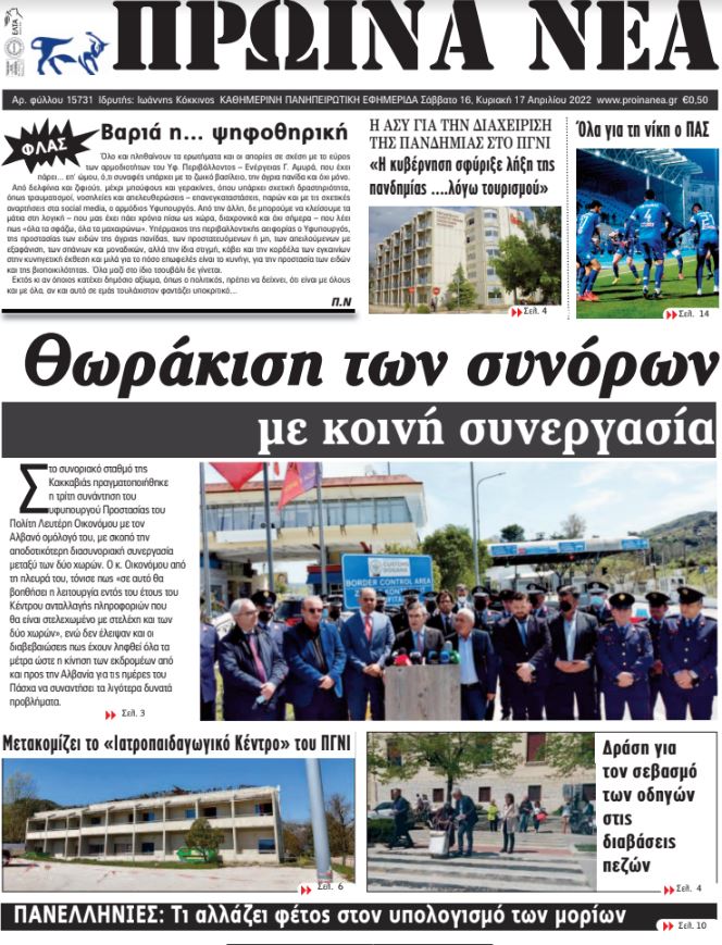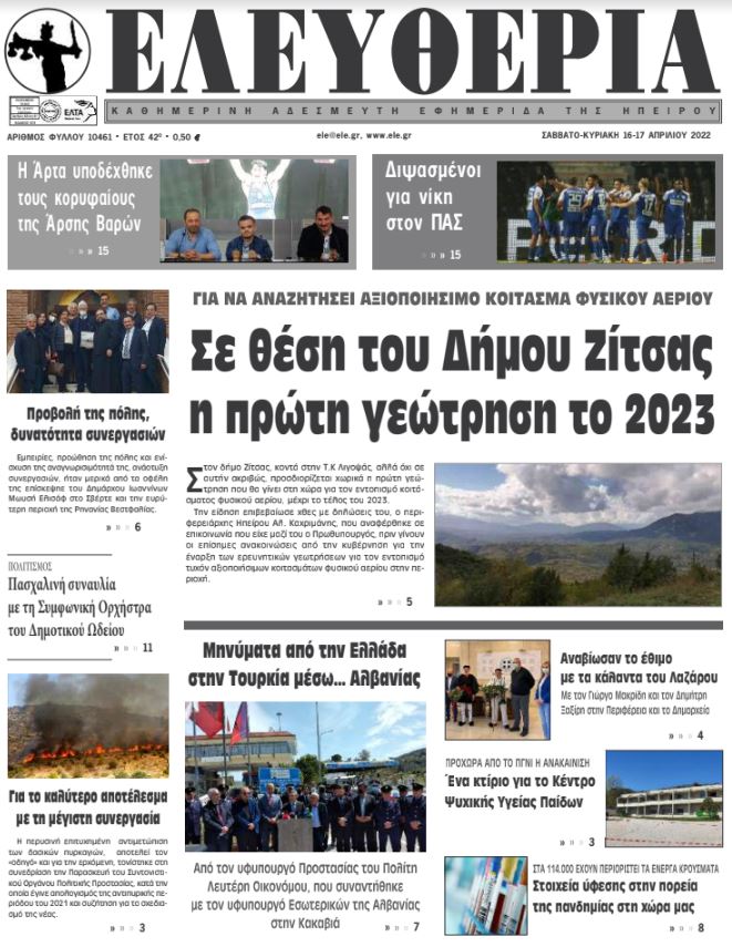 ΑρχικήΕΙΔΗΣΕΙΣΗΠΕΙΡΟΣ ΗΠΕΙΡΟΣ Τα πρωτοσέλιδα των γιαννιώτικων εφημερίδων 16.04.2022 130 FacebookTwitterWhatsAppEmailΤυπώνωViber Διαβάστε στα πρωτοσέλιδα των γιαννιώτικων εφημερίδων 16-18 Απριλίου TagsΓΙΑΝΝΙΩΤΙΚΕΣ ΕΦΗΜΕΡΙΔΕΣΠΡΩΤΟΣΕΛΙΔΑ FacebookTwitterWhatsAppEmailΤυπώνωViber Προηγούμενο άρθροΠάτρα: «Μίλησε» το τάμπλετ -Ηλεκτρονικά ευρήματα «καίνε» τη Ρούλα ΠισπιρίγκουΕπόμενο άρθροΔιψασμένοι για νίκη στον ΠΑΣ ΣΧΕΤΙΚΑ ΑΡΘΡΑ Τα πρωτοσέλιδα των γιαννιώτικων εφημερίδων TOP STORIES 09.12.2025 Τα πρωτοσέλιδα των γιαννιώτικων εφημερίδων ΗΠΕΙΡΟΣ 06.12.2025 Τα πρωτοσέλιδα των γιαννιώτικων εφημερίδων ΗΠΕΙΡΟΣ 05.12.2025 Τα πρωτοσέλιδα των γιαννιώτικων εφημερίδων ΗΠΕΙΡΟΣ 04.12.2025 Τα πρωτοσέλιδα των γιαννιώτικων εφημερίδων ΗΠΕΙΡΟΣ 03.12.2025 Τα πρωτοσέλιδα των γιαννιώτικων εφημερίδων ΗΠΕΙΡΟΣ 02.12.2025 ΣΤΗΝ ΙΔΙΑ ΚΑΤΗΓΟΡΙΑ ΕΑΥΝΙ: Τα κοινωνικά προβλήματα δεν λύνονται με αστυνομεύση ΗΠΕΙΡΟΣ 09.12.2025 Κλιμακώνονται οι αγροτικές κινητοποιήσεις – Μπλόκα και στην Ήπειρο ΗΠΕΙΡΟΣ 09.12.2025 Νέος πρόεδρος του Δικηγορικού Συλλόγου Ιωαννίνων ο Σπ. Μποροδήμος ΗΠΕΙΡΟΣ 09.12.2025 Καταιγιστικές εξελίξεις στον ΑΣΔΑ για τα θαμμένα ζωικά απόβλητα ΗΠΕΙΡΟΣ 09.12.2025 Τα πρωτοσέλιδα των γιαννιώτικων εφημερίδων TOP STORIES 09.12.2025 Στο συνέδριο της «Βιώσιμης Πόλης» ο Δήμαρχος Αρταίων ΗΠΕΙΡΟΣ 08.12.2025 ΜΗ ΧΑΣΕΤΕ Τέλη κυκλοφορίας: Διευκρινίσεις από την ΑΑΔΕ για τους ιδιοκτήτες οχημάτων Κλιμακώνονται οι αγροτικές κινητοποιήσεις – Μπλόκα και στην Ήπειρο Νέος πρόεδρος του Δικηγορικού Συλλόγου Ιωαννίνων ο Σπ. Μποροδήμος Καταιγιστικές εξελίξεις στον ΑΣΔΑ για τα θαμμένα ζωικά απόβλητα Τα πρωτοσέλιδα των γιαννιώτικων εφημερίδων ΔΗΜΟΦΙΛΗ OLD FANS: Ο ΠΑΣ είναι ιδέα και οι ιδέες δεν πεθαίνουν Τα πρωτοσέλιδα των γιαννιώτικων εφημερίδων «Tzoumerka – Αγιογραφία των “Ορέων”» στην Αθήνα Τα του Καίσαρος… Ιαπωνία: Τουλάχιστον 30 τραυματίες μετά τον ισχυρό σεισμό και το τσουνάμι