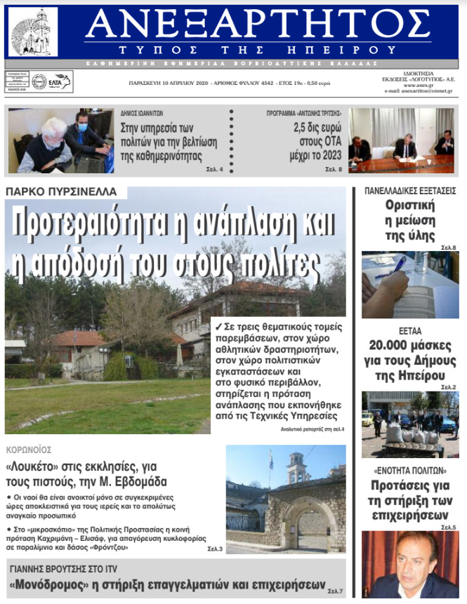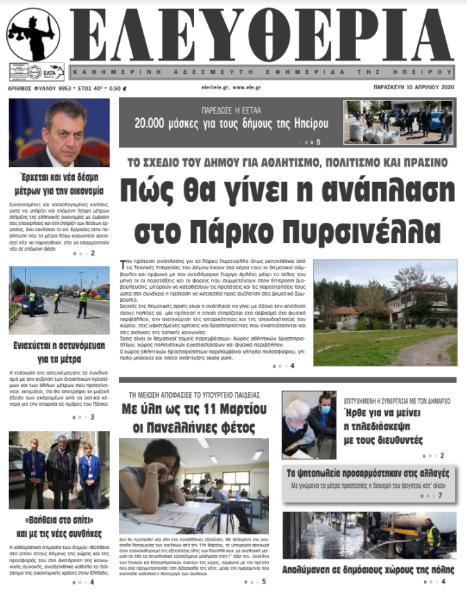ΑρχικήΕΙΔΗΣΕΙΣΗΠΕΙΡΟΣ ΗΠΕΙΡΟΣ Τα πρωτοσέλιδα των γιαννιώτικων εφημερίδων 10.04.2020 226 FacebookTwitterWhatsAppEmailΤυπώνωViber Διαβάστε στα πρωτοσέλιδα των γιαννιώτικων εφημερίδων σήμερα, Παρασκευή 10 Απριλίου. TagsΓΙΑΝΝΙΩΤΙΚΕΣ ΕΦΗΜΕΡΙΔΕΣΠΡΩΤΟΣΕΛΙΔΑ FacebookTwitterWhatsAppEmailΤυπώνωViber Προηγούμενο άρθροΠώς θα λειτουργήσουν τα καταστήματα τροφίμων το ΠάσχαΕπόμενο άρθροΟι τρεις άξονες για την στήριξη κρατών, εργαζομένων και επιχειρήσεων που αποφάσισε το Eurogroup ΣΧΕΤΙΚΑ ΑΡΘΡΑ Τα πρωτοσέλιδα των γιαννιώτικων εφημερίδων TOP STORIES 27.11.2025 Τα πρωτοσέλιδα των γιαννιώτικων εφημερίδων ΗΠΕΙΡΟΣ 26.11.2025 Τα πρωτοσέλιδα των γιαννιώτικων εφημερίδων ΗΠΕΙΡΟΣ 25.11.2025 Τα πρωτοσέλιδα των γιαννιώτικων εφημερίδων ΗΠΕΙΡΟΣ 22.11.2025 Τα πρωτοσέλιδα των γιαννιώτικων εφημερίδων ΗΠΕΙΡΟΣ 21.11.2025 Τα πρωτοσέλιδα των γιαννιώτικων εφημερίδων TOP STORIES 20.11.2025 ΣΤΗΝ ΙΔΙΑ ΚΑΤΗΓΟΡΙΑ Στο Μέτσοβο η Ολυμπιακή Φλόγα την Παρασκευή ΗΠΕΙΡΟΣ 27.11.2025 Σύλληψη για ηχορύπανση από κατάστημα διασκέδασης ΗΠΕΙΡΟΣ 27.11.2025 Δικογραφία για απάτη 3.000 ευρώ στην Άρτα ΗΠΕΙΡΟΣ 27.11.2025 Αιτήσεις για αποζημίωση πλημμυροπαθών στον Δήμο Ζηρού – Τα δικαιολογητικά ΗΠΕΙΡΟΣ 27.11.2025 Κατολίσθηση στην Άγναντα – Ανήσυχοι οι κάτοικοι ΗΠΕΙΡΟΣ 27.11.2025 Σε ετοιμότητα Περιφέρεια και δήμοι για το νέο κύμα κακοκαιρίας ΗΠΕΙΡΟΣ 27.11.2025 ΜΗ ΧΑΣΕΤΕ Μητσοτάκης: Αύριο η επιστροφή ενοικίου για 1 εκατ. πολίτες Πότε θα καταβληθούν οι συντάξεις Ιανουαρίου Κατολίσθηση στην Άγναντα – Ανήσυχοι οι κάτοικοι Σε ετοιμότητα Περιφέρεια και δήμοι για το νέο κύμα κακοκαιρίας Κατηγορίες κατά του Δήμου για αδιαφορία μετά την πτώση δέντρου ΔΗΜΟΦΙΛΗ Πιερρακάκης: Πώς η ανάκαμψη της Ελλάδας μπορεί να αποτελέσει έμπνευση για την Ευρώπη Υπουργείο Εργασίας: 12 ερωτήσεις και απαντήσεις για την κοινωνική συμφωνία Μητσοτάκης: Αύριο η επιστροφή ενοικίου για 1 εκατ. πολίτες Στήνουν μπλόκο στον Ε-65 οι αγρότες της Καρδίτσας την Κυριακή Άνοιγμα με πτώση 0,14% στο Χρηματιστήριο Αθηνών