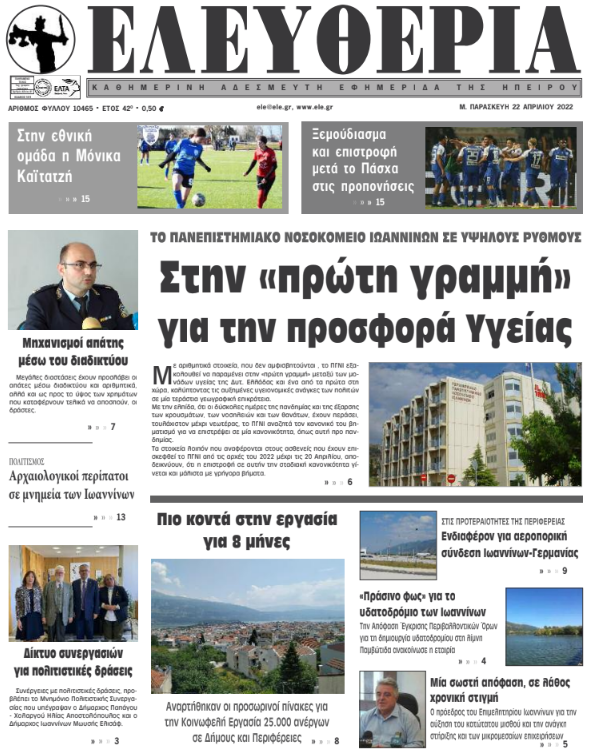 ΑρχικήTOP STORIES TOP STORIESΗΠΕΙΡΟΣ Τα πρωτοσέλιδα των γιαννιώτικων εφημερίδων 22.04.2022 114 FacebookTwitterWhatsAppEmailΤυπώνωViber Διαβάστε στα πρωτοσέλιδα των γιαννιώτικων εφημερίδων της Μ. Παρασκευής 22 Απριλίου TagsΓΙΑΝΝΙΩΤΙΚΕΣ ΕΦΗΜΕΡΙΔΕΣΠΡΩΤΟΣΕΛΙΔΑ FacebookTwitterWhatsAppEmailΤυπώνωViber Προηγούμενο άρθροΆγιο είχε οδηγός σε τροχαίο έξω από τον ΚατσικάΕπόμενο άρθροΜητσοτάκης: Τον Μάιο ανακοινώνουμε δίκτυο ορεινής διάσωσης ΣΧΕΤΙΚΑ ΑΡΘΡΑ Τα πρωτοσέλιδα των γιαννιώτικων εφημερίδων TOP STORIES 28.11.2025 Τα πρωτοσέλιδα των γιαννιώτικων εφημερίδων ΗΠΕΙΡΟΣ 27.11.2025 Τα πρωτοσέλιδα των γιαννιώτικων εφημερίδων ΗΠΕΙΡΟΣ 26.11.2025 Τα πρωτοσέλιδα των γιαννιώτικων εφημερίδων ΗΠΕΙΡΟΣ 25.11.2025 Τα πρωτοσέλιδα των γιαννιώτικων εφημερίδων ΗΠΕΙΡΟΣ 22.11.2025 Τα πρωτοσέλιδα των γιαννιώτικων εφημερίδων ΗΠΕΙΡΟΣ 21.11.2025 ΣΤΗΝ ΙΔΙΑ ΚΑΤΗΓΟΡΙΑ Διαγωνισμός για έργα ενεργειακής αναβάθμισης στο ΠΓΝΙ ΗΠΕΙΡΟΣ 28.11.2025 Εισροή νερού σε δύο χειρουργικές αίθουσες στο νοσοκομείο «Χατζηκώστα» ΗΠΕΙΡΟΣ 28.11.2025 Άρτα: Αλλοδαπός έκλεψε 850 ευρώ από ηλικιωμένο ΗΠΕΙΡΟΣ 28.11.2025 Σήμερα η «Black Friday»: Τι πρέπει να προσέξετε στις αγορές σας TOP STORIES 28.11.2025 Κοινός τόπος η ανάγκη εξάλειψης της βίας κατά των γυναικών ΗΠΕΙΡΟΣ 28.11.2025 Νέες κατολισθήσεις στα Τζουμέρκα μετά την κακοκαιρία ΗΠΕΙΡΟΣ 28.11.2025 ΜΗ ΧΑΣΕΤΕ Σήμερα η επιστροφή ενοικίου στους δικαιούχους Σήμερα η «Black Friday»: Τι πρέπει να προσέξετε στις αγορές σας Νέες κατολισθήσεις στα Τζουμέρκα μετά την κακοκαιρία Εμφανίστηκε ξανά η εποχική λίμνη Βρέλλη Επιδόματα και προσλήψεις στο συνέδριο δικαστικών υπαλλήλων ΔΗΜΟΦΙΛΗ Για μία νέα αρχή και εκτός έδρας Thanksgiving: Η ιστορία και οι παραδόσεις πίσω από την Ημέρα των Ευχαριστιών ΕΛΣΤΑΤ: Μείωση στις πωλήσεις σε τρόφιμα, καύσιμα και ένδυση τον Σεπτέμβριο Διαστημική αύξηση στον ευρωπαϊκό προϋπολογισμό για το… διάστημα Κεραυνός «χτύπησε» στρατόπεδο στο Μεσολόγγι -Στο νοσοκομείο τέσσερις στρατιώτες