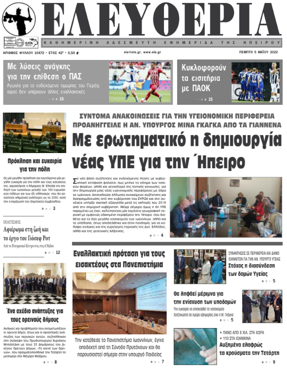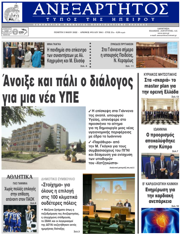 Διαβάστε στα πρωτοσέλιδα των γιαννιώτικων εφημερίδων της Πέμπτης 5 Μαΐου