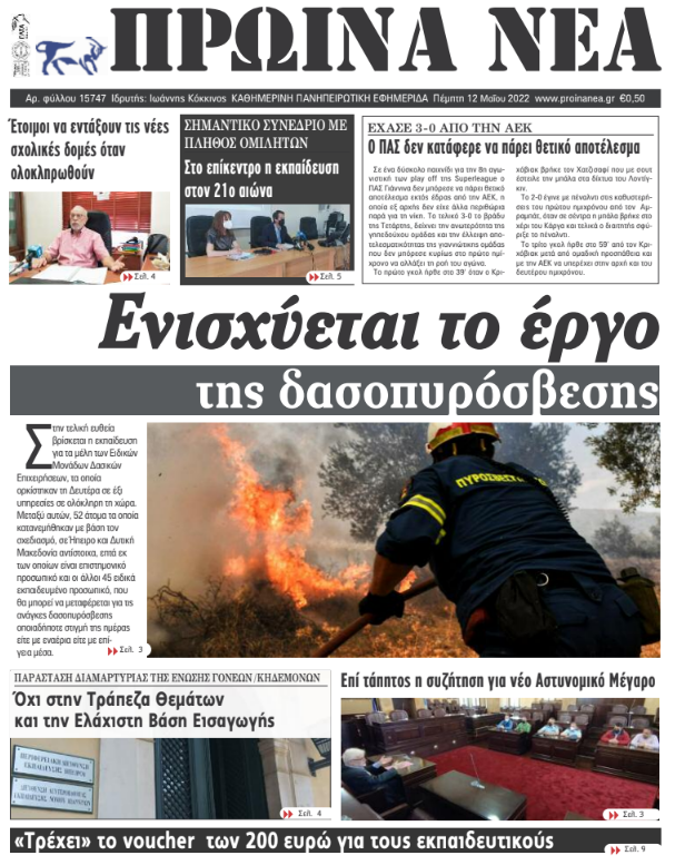Διαβάστε στα πρωτοσέλιδα των γιαννιώτικων εφημερίδων της Πέμπτης 12 Μαΐου