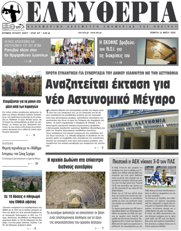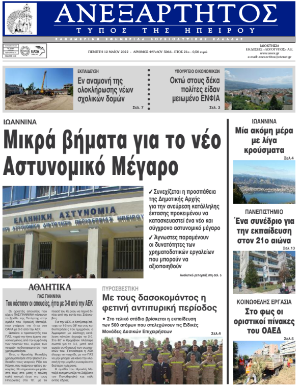 Διαβάστε στα πρωτοσέλιδα των γιαννιώτικων εφημερίδων της Πέμπτης 12 Μαΐου