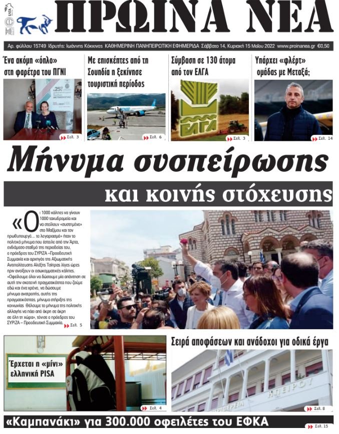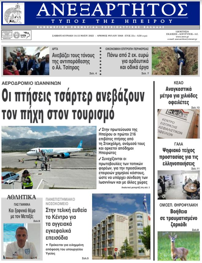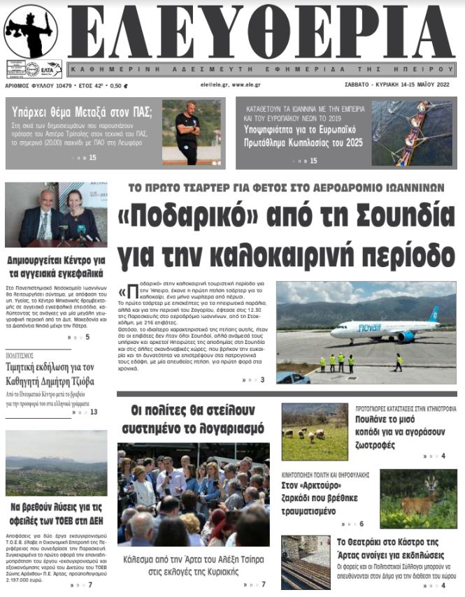 ΑρχικήTOP STORIES TOP STORIESΗΠΕΙΡΟΣ Τα πρωτοσέλιδα των γιαννιώτικων εφημερίδων 14.05.2022 128 FacebookTwitterWhatsAppEmailΤυπώνωViber Διαβάστε στα πρωτοσέλιδα των γιαννιώτικων εφημερίδων 14-15 Μαΐου TagsΓΙΑΝΝΙΩΤΙΚΕΣ ΕΦΗΜΕΡΙΔΕΣΠΡΩΤΟΣΕΛΙΔΑ FacebookTwitterWhatsAppEmailΤυπώνωViber Προηγούμενο άρθροΑΡΤΑ – Το Θεατράκι στο Κάστρο ανοίγει τις πύλες του ως χώρος εκδηλώσεωνΕπόμενο άρθροΤα επιδόματα που πληρώνει ο ΟΠΕΚΑ, τον Μάιο ΣΧΕΤΙΚΑ ΑΡΘΡΑ Τα πρωτοσέλιδα των γιαννιώτικων εφημερίδων TOP STORIES 13.11.2025 Τα πρωτοσέλιδα των γιαννιώτικων εφημερίδων ΗΠΕΙΡΟΣ 12.11.2025 Τα πρωτοσέλιδα των γιαννιώτικων εφημερίδων ΗΠΕΙΡΟΣ 11.11.2025 Τα πρωτοσέλιδα των γιαννιώτικων εφημερίδων TOP STORIES 08.11.2025 Τα πρωτοσέλιδα των γιαννιώτικων εφημερίδων ΗΠΕΙΡΟΣ 07.11.2025 Τα πρωτοσέλιδα των γιαννιώτικων εφημερίδων ΗΠΕΙΡΟΣ 06.11.2025 ΣΤΗΝ ΙΔΙΑ ΚΑΤΗΓΟΡΙΑ Ανακοινώσεις του Δημάρχου Αρταίων Χριστ. Σιαφάκα στο Δημοτικό Συμβούλιο ΗΠΕΙΡΟΣ 13.11.2025 Δύο συλλήψεις για διαδοχικές κλοπές από σούπερ-μάρκετ ΗΠΕΙΡΟΣ 13.11.2025 Επιχείρηση της Αστυνομίας Ιωαννίνων στον Πειραιά – Σύλληψη για ναρκωτικά και οπλισμό TOP STORIES 13.11.2025 Τιμητική διάκριση για τον Διευθυντή της Ογκολογικής Κλινικής του ΠΓΝΙ, Στέργιο Μπούσιο ΗΠΕΙΡΟΣ 13.11.2025 Χρηματοδοτείται η επέκταση του Γηροκομείου Φιλιατών ΗΠΕΙΡΟΣ 13.11.2025 Έντονη διαμαρτυρία για την ανακατανομή της έκτακτης καταβολής των ΚΑΠ ΗΠΕΙΡΟΣ 13.11.2025 ΜΗ ΧΑΣΕΤΕ Επιχείρηση της Αστυνομίας Ιωαννίνων στον Πειραιά – Σύλληψη για ναρκωτικά και οπλισμό Δένδρο στην πλατεία, συναυλία στο Πνευματικό Κέντρο; «Λεόντειοι όροι» στη σύμβαση για τα LED Συνεργασία με τον ΟΦΥΠΕΚΑ για το παραλίμνιο μέτωπο του Δήμου Ιωαννιτών Στο… περίμενε οι πυρόπληκτοι του Δήμου Ζηρού ΔΗΜΟΦΙΛΗ