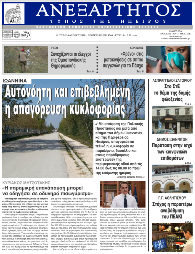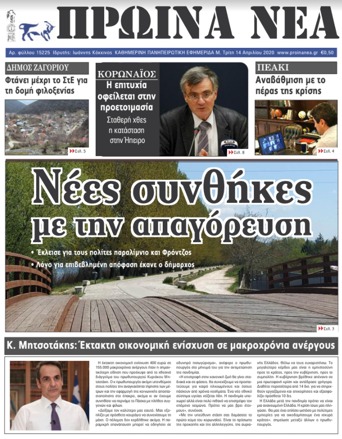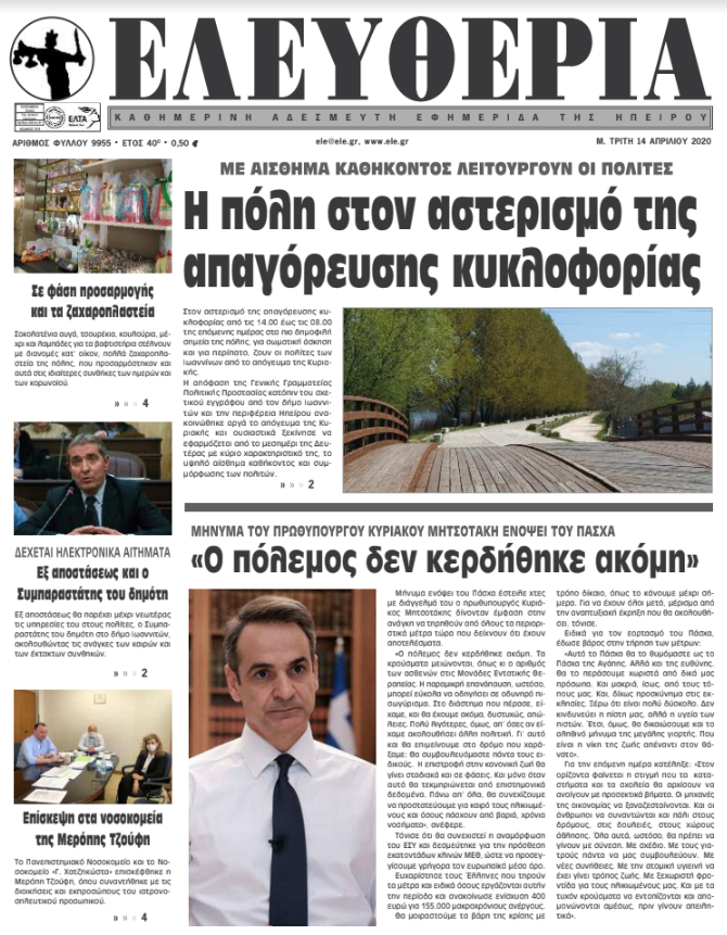ΑρχικήTOP STORIES TOP STORIESΗΠΕΙΡΟΣ Τα πρωτοσέλιδα των γιαννιώτικων εφημερίδων 14.04.2020 254 FacebookTwitterWhatsAppEmailΤυπώνωViber Διαβάστε στα πρωτοσέλιδα των γιαννιώτικων εφημερίδων σήμερα, Τρίτη 14 Απριλίου. TagsΓΙΑΝΝΙΩΤΙΚΕΣ ΕΦΗΜΕΡΙΔΕΣΠΡΩΤΟΣΕΛΙΔΑ FacebookTwitterWhatsAppEmailΤυπώνωViber Προηγούμενο άρθροEπίδομα 400 ευρώ για τους μακροχρόνια άνεργουςΕπόμενο άρθροΗ πόλη στον αστερισμό της απαγόρευσης κυκλοφορίας ΣΧΕΤΙΚΑ ΑΡΘΡΑ Τα πρωτοσέλιδα των γιαννιώτικων εφημερίδων ΗΠΕΙΡΟΣ 29.11.2025 Τα πρωτοσέλιδα των γιαννιώτικων εφημερίδων ΗΠΕΙΡΟΣ 28.11.2025 Τα πρωτοσέλιδα των γιαννιώτικων εφημερίδων ΗΠΕΙΡΟΣ 27.11.2025 Τα πρωτοσέλιδα των γιαννιώτικων εφημερίδων ΗΠΕΙΡΟΣ 26.11.2025 Τα πρωτοσέλιδα των γιαννιώτικων εφημερίδων ΗΠΕΙΡΟΣ 25.11.2025 Τα πρωτοσέλιδα των γιαννιώτικων εφημερίδων ΗΠΕΙΡΟΣ 22.11.2025 ΣΤΗΝ ΙΔΙΑ ΚΑΤΗΓΟΡΙΑ Συνελήφθη αλλοδαπή με ένταλμα στη Θεσπρωτία ΗΠΕΙΡΟΣ 01.12.2025 Υπάλληλος καταστήματος στα Ιωάννινα κατηγορείται για κλοπή 7.300 ευρώ ΗΠΕΙΡΟΣ 01.12.2025 Διαχειρίσιμη η κατάσταση στα Τζουμέρκα – Μία κατοικία κατεδαφιστέα ΗΠΕΙΡΟΣ 30.11.2025 Τίμησαν τη μνήμη και τη θυσία του Λορέντζου Μαβίλη ΗΠΕΙΡΟΣ 30.11.2025 Στο Σιναΐτικο Μετόχι Ιωαννίνων ο Αρχιεπίσκοπος Σινά κ.κ. Συμεών ΗΠΕΙΡΟΣ 30.11.2025 Υπόμνημα με τα προβλήματα και τις προτάσεις τους ΗΠΕΙΡΟΣ 30.11.2025 ΜΗ ΧΑΣΕΤΕ Νέα κακοκαιρία προ των πυλών – Πού θα χτυπήσει Υποχρεωτική από σήμερα η αποδοχή πληρωμών μέσω IRIS για συναλλαγές με ιδιώτες Διαχειρίσιμη η κατάσταση στα Τζουμέρκα – Μία κατοικία κατεδαφιστέα Τίμησαν τη μνήμη και τη θυσία του Λορέντζου Μαβίλη Στο Σιναΐτικο Μετόχι Ιωαννίνων ο Αρχιεπίσκοπος Σινά κ.κ. Συμεών ΔΗΜΟΦΙΛΗ Νέα κακοκαιρία προ των πυλών – Πού θα χτυπήσει Συνελήφθη αλλοδαπή με ένταλμα στη Θεσπρωτία Προσωπικός Αριθμός: Έχει εκδοθεί για 9,3 εκατ. πολίτες, πού και γιατί υπάρχουν προβλήματα Υποχρεωτική από σήμερα η αποδοχή πληρωμών μέσω IRIS για συναλλαγές με ιδιώτες Υπάλληλος καταστήματος στα Ιωάννινα κατηγορείται για κλοπή 7.300 ευρώ