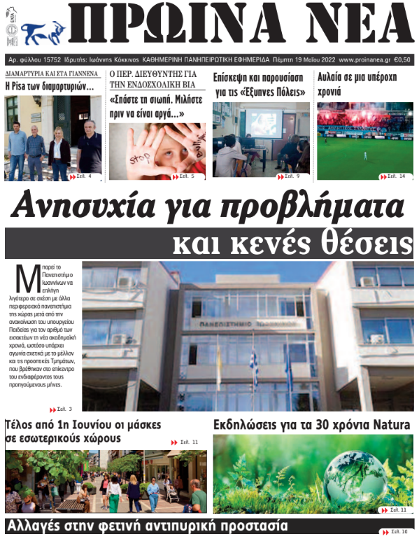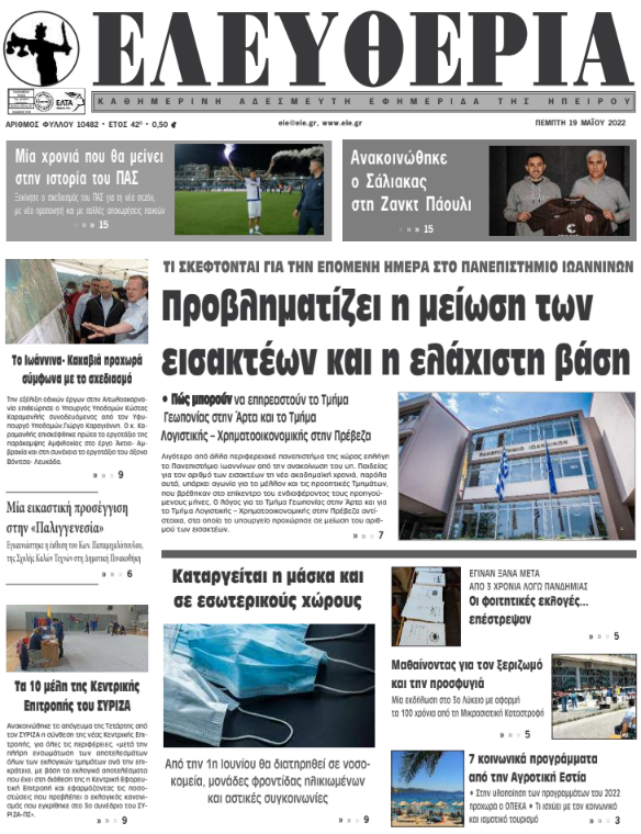 ΑρχικήΕΙΔΗΣΕΙΣΗΠΕΙΡΟΣ ΗΠΕΙΡΟΣ Τα πρωτοσέλιδα των γιαννιώτικων εφημερίδων 19.05.2022 132 FacebookTwitterWhatsAppEmailΤυπώνωViber Διαβάστε στα πρωτοσέλιδα των γιαννιώτικων εφημερίδων της Πέμπτης 19 Μαΐου TagsΓΙΑΝΝΙΩΤΙΚΕΣ ΕΦΗΜΕΡΙΔΕΣΠΡΩΤΟΣΕΛΙΔΑ FacebookTwitterWhatsAppEmailΤυπώνωViber Προηγούμενο άρθροΟι Ουκρανοί ανατίναξαν τρένο που μετέφερε Ρώσους στρατιώτες στη ΜελιτόποληΕπόμενο άρθροΟι φοιτητικές εκλογές… επέστρεψαν ΣΧΕΤΙΚΑ ΑΡΘΡΑ Τα πρωτοσέλιδα των γιαννιώτικων εφημερίδων TOP STORIES 08.11.2025 Τα πρωτοσέλιδα των γιαννιώτικων εφημερίδων ΗΠΕΙΡΟΣ 07.11.2025 Τα πρωτοσέλιδα των γιαννιώτικων εφημερίδων ΗΠΕΙΡΟΣ 06.11.2025 Τα πρωτοσέλιδα των γιαννιώτικων εφημερίδων ΗΠΕΙΡΟΣ 05.11.2025 Τα πρωτοσέλιδα των γιαννιώτικων εφημερίδων ΗΠΕΙΡΟΣ 04.11.2025 Τα πρωτοσέλιδα των γιαννιώτικων εφημερίδων TOP STORIES 01.11.2025 ΣΤΗΝ ΙΔΙΑ ΚΑΤΗΓΟΡΙΑ Νταλίκα ντελαπάρισε στον νέο κόμβο στην παλιά Ε.Ο Ιωαννίνων–Ηγουμενίτσας ΗΠΕΙΡΟΣ 10.11.2025 Τροχαίο με έναν τραυματία στο Κλειστό Άρτας ΗΠΕΙΡΟΣ 10.11.2025 Παρέλαβε δέμα με ναρκωτικά από θυρίδα ταχυμεταφορών ΗΠΕΙΡΟΣ 10.11.2025 Κοινό των Ηπειρωτών: Ανάγκη για πλήρη διαφάνεια στις παρεμβάσεις στον Γράμμο ΗΠΕΙΡΟΣ 10.11.2025 Μεγάλα προβλήματα από την κακοκαιρία σε Φιλιππιάδα, Πρέβεζα και Βόνιτσα ΗΠΕΙΡΟΣ 10.11.2025 Σύλληψη σε κατάστημα στα Ιωάννινα για διάθεση αλκοόλ σε ανηλίκους ΗΠΕΙΡΟΣ 10.11.2025 ΜΗ ΧΑΣΕΤΕ Νταλίκα ντελαπάρισε στον νέο κόμβο στην παλιά Ε.Ο Ιωαννίνων–Ηγουμενίτσας Τον Ιούνιο θα εγκατασταθούν οι 1.000 κάμερες στους δρόμους -Βodycam και σε αστυνομικούς Συντάξεις Δεκεμβρίου: Πότε θα καταβληθούν Ο «χάρτης» των πληρωμών από τον e-ΕΦΚΑ και τη ΔΥΠΑ έως την Παρασκευή 14 Νοεμβρίου Η Ελλάδα πρώτη στην ΕΕ σε πολίτες χωρίς αναγκαία ιατρική περίθαλψη ΔΗΜΟΦΙΛΗ Κέρκυρα: Κατέρρευσε τοιχίο και καταπλάκωσε αυτοκίνητα Γιόγιακας: Επίδομα 130 ευρώ σε πυροσβέστες μονάδων πλησίον των χερσαίων συνόρων Αποκαλύφθηκε ο μυστηριώδης «άνδρας με τη φεντόρα» από τη ληστεία του Λούβρου Αλεξανδρούπολη: Νεκρή στο διαμέρισμά της εντοπίστηκε 18χρονη φοιτήτρια Τροχαίο με έναν τραυματία στο Κλειστό Άρτας