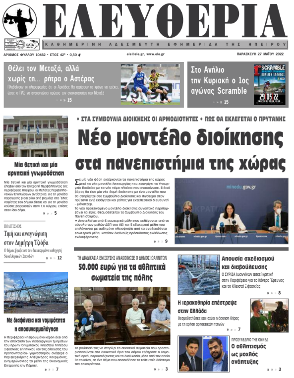 Διαβάστε στα πρωτοσέλιδα των γιαννιώτικων εφημερίδων της Παρασκευής 27 Μαΐου