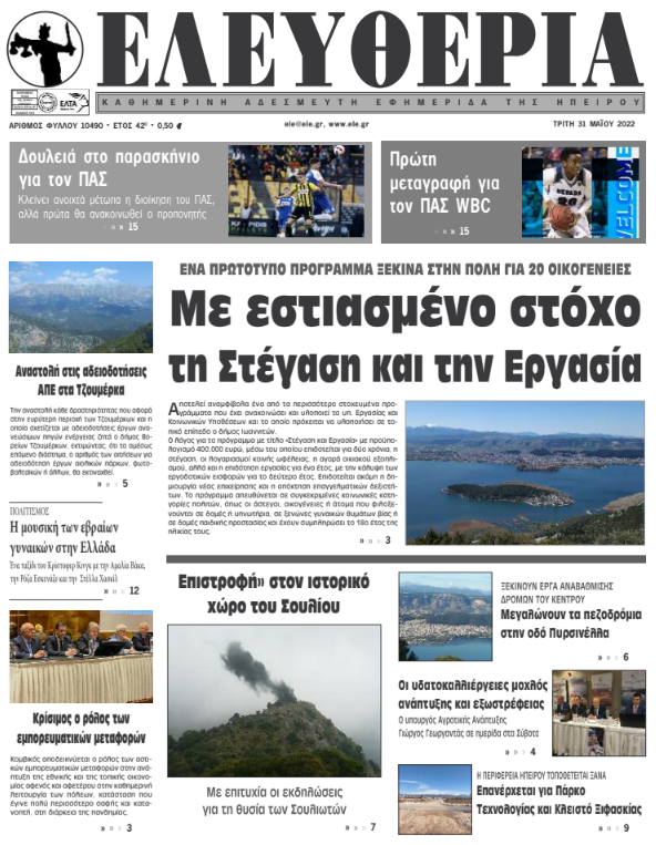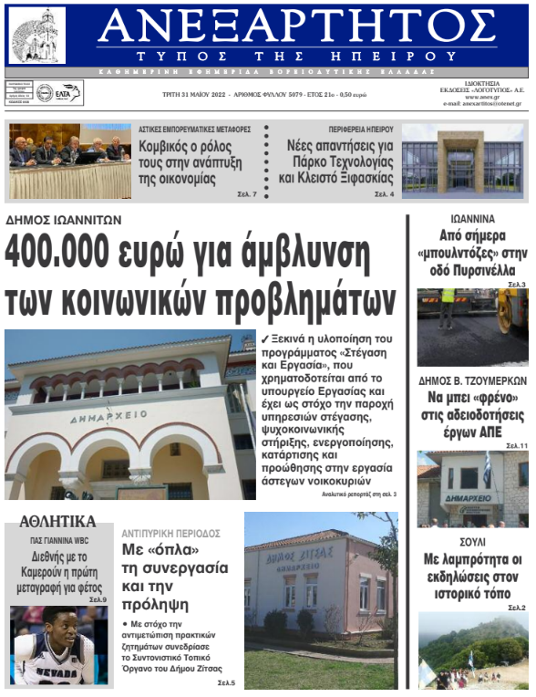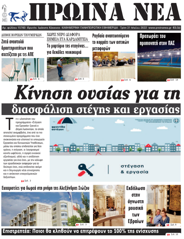 Διαβάστε στα πρωτοσέλιδα των γιαννιώτικων εφημερίδων της Τρίτης 31 Μαΐου