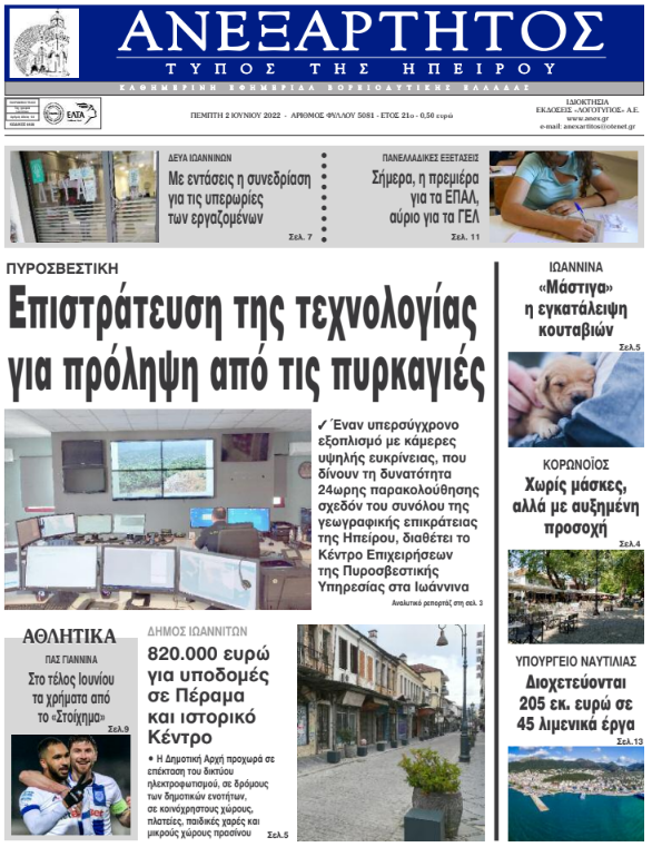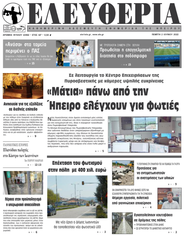 Διαβάστε στα πρωτοσέλιδα των γιαννιώτικων εφημερίδων της Πέμπτης 2 Ιουνίου