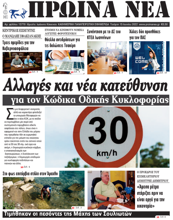Διαβάστε στα πρωτοσέλιδα των γιαννιώτικων εφημερίδων της Τετάρτης 15 Ιουνίου