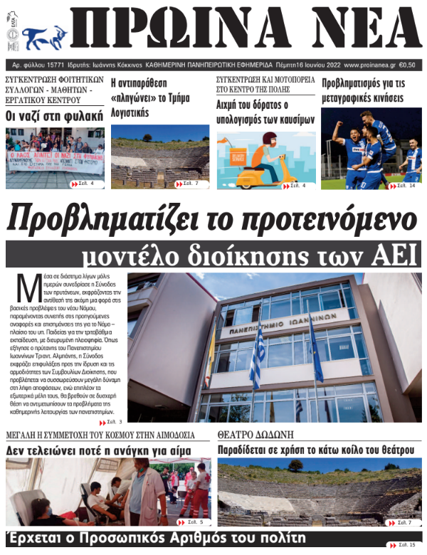 Διαβάστε στα πρωτοσέλιδα των γιαννιώτικων εφημερίδων της Πέμπτης 16 Ιουνίου