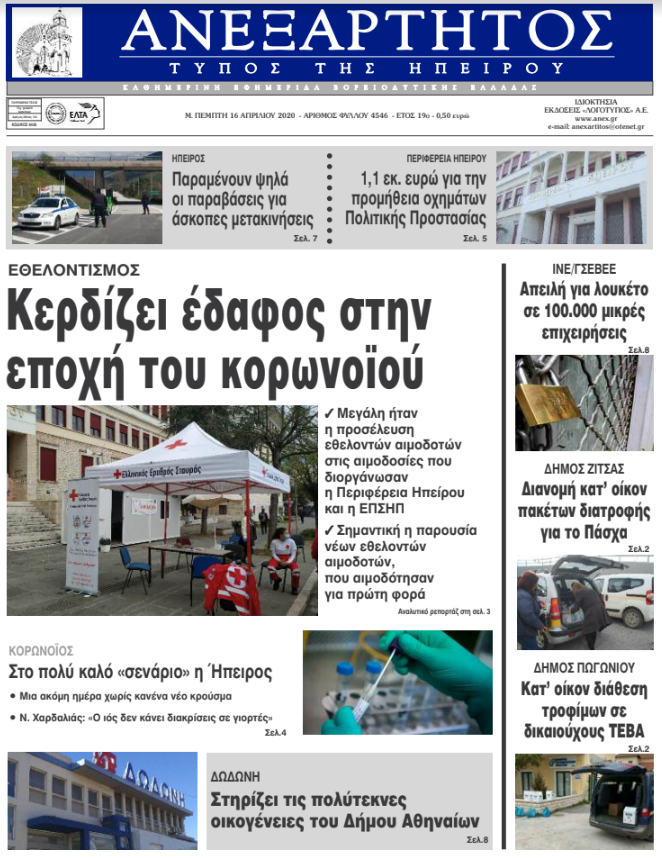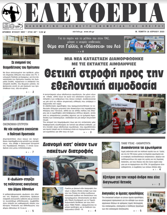 ΑρχικήΕΙΔΗΣΕΙΣΗΠΕΙΡΟΣ ΗΠΕΙΡΟΣ Τα πρωτοσέλιδα των γιαννιώτικων εφημερίδων 16.04.2020 241 FacebookTwitterWhatsAppEmailΤυπώνωViber Διαβάστε στα πρωτοσέλιδα των γιαννιώτικων εφημερίδων σήμερα, Πέμπτη 16 Απριλίου. TagsΓΙΑΝΝΙΩΤΙΚΕΣ ΕΦΗΜΕΡΙΔΕΣΠΡΩΤΟΣΕΛΙΔΑ FacebookTwitterWhatsAppEmailΤυπώνωViber Προηγούμενο άρθρο300.000 στον Δήμο Ν. Σκουφά για αποκατάσταση ζημιώνΕπόμενο άρθροΣε αναμονή της θεσμοθέτησης του Πρότυπου ΣΧΕΤΙΚΑ ΑΡΘΡΑ Τα πρωτοσέλιδα των γιαννιώτικων εφημερίδων TOP STORIES 22.11.2025 Τα πρωτοσέλιδα των γιαννιώτικων εφημερίδων ΗΠΕΙΡΟΣ 21.11.2025 Τα πρωτοσέλιδα των γιαννιώτικων εφημερίδων TOP STORIES 20.11.2025 Τα πρωτοσέλιδα των γιαννιώτικων εφημερίδων ΗΠΕΙΡΟΣ 19.11.2025 Τα πρωτοσέλιδα των γιαννιώτικων εφημερίδων ΗΠΕΙΡΟΣ 18.11.2025 Τα πρωτοσέλιδα των γιαννιώτικων εφημερίδων ΗΠΕΙΡΟΣ 15.11.2025 ΣΤΗΝ ΙΔΙΑ ΚΑΤΗΓΟΡΙΑ Τα πρωτοσέλιδα των γιαννιώτικων εφημερίδων TOP STORIES 22.11.2025 Ημέρα Ενόπλων Δυνάμεων με αποκαλυπτήρια προτομών ΗΠΕΙΡΟΣ 21.11.2025 Έρευνες για φόλες στα Τζουμέρκα μετά τον θάνατο κυνηγετικών σκύλων ΗΠΕΙΡΟΣ 21.11.2025 Σε δημόσια πρόσκληση για την αξιοποίηση του Ξενία Ηγουμενίτσας προχωρά η ΕΤΑΔ ΗΠΕΙΡΟΣ 21.11.2025 Ήχησε το «112» στα Ιωάννινα ΗΠΕΙΡΟΣ 21.11.2025 Υπερχείλιση του Αράχθου στην Πλάκα – Φερτά υλικά κάλυψαν τη γέφυρα Μπέλεϋ ΗΠΕΙΡΟΣ 21.11.2025 ΜΗ ΧΑΣΕΤΕ Ικανοποίηση για τη μείωση της ανεργίας Τα πρωτοσέλιδα των γιαννιώτικων εφημερίδων Ημέρα Ενόπλων Δυνάμεων με αποκαλυπτήρια προτομών Ήχησε το «112» στα Ιωάννινα Υπερχείλιση του Αράχθου στην Πλάκα – Φερτά υλικά κάλυψαν τη γέφυρα Μπέλεϋ ΔΗΜΟΦΙΛΗ Δράσεις ενημέρωσης για τον Σεισμικό Κίνδυνο 81.651 αιτήσεις στο North Evia Pass 2025 ΣΤΟΙΧΕΙΑ ΤΗΣ ΕΛΣΤΑΤ -Αυξήθηκαν οι συμβολαιογραφικές πράξεις Ο Γιώργος Στύλιος για το νομοσχέδιο για την ΕΡΤ