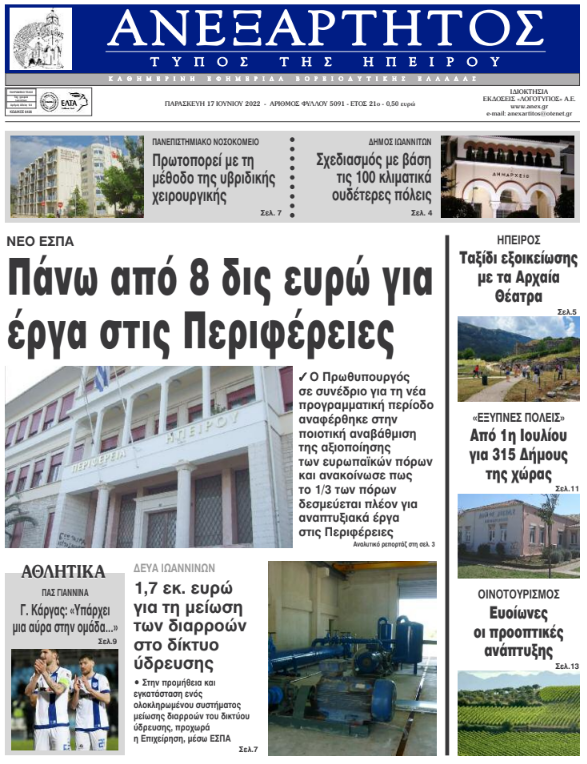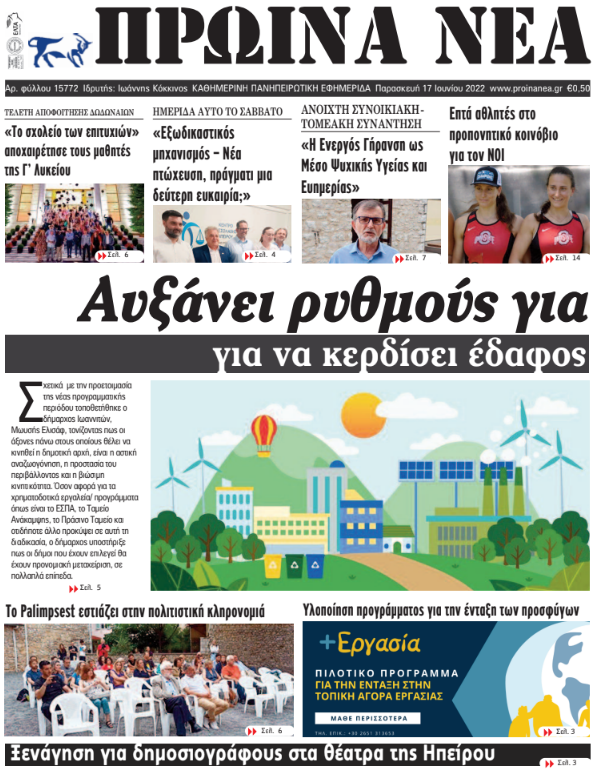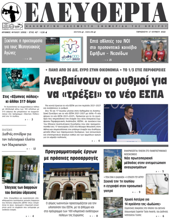 ΑρχικήTOP STORIES TOP STORIESΗΠΕΙΡΟΣ Τα πρωτοσέλιδα των γιαννιώτικων εφημερίδων 17.06.2022 87 FacebookTwitterWhatsAppEmailΤυπώνωViber Διαβάστε στα πρωτοσέλιδα των γιαννιώτικων εφημερίδων της Παρασκευής 17 Ιουνίου TagsΓΙΑΝΝΙΩΤΙΚΕΣ ΕΦΗΜΕΡΙΔΕΣΠΡΩΤΟΣΕΛΙΔΑ FacebookTwitterWhatsAppEmailΤυπώνωViber Προηγούμενο άρθροΕυλογιά των πιθήκων: Δύο τα επιβεβαιωμένα κρούσματα στην ΕλλάδαΕπόμενο άρθροΠρογραμματισμός έργων με πράσινες προσαρμογές ΣΧΕΤΙΚΑ ΑΡΘΡΑ Τα πρωτοσέλιδα των γιαννιώτικων εφημερίδων TOP STORIES 08.11.2025 Τα πρωτοσέλιδα των γιαννιώτικων εφημερίδων ΗΠΕΙΡΟΣ 07.11.2025 Τα πρωτοσέλιδα των γιαννιώτικων εφημερίδων ΗΠΕΙΡΟΣ 06.11.2025 Τα πρωτοσέλιδα των γιαννιώτικων εφημερίδων ΗΠΕΙΡΟΣ 05.11.2025 Τα πρωτοσέλιδα των γιαννιώτικων εφημερίδων ΗΠΕΙΡΟΣ 04.11.2025 Τα πρωτοσέλιδα των γιαννιώτικων εφημερίδων TOP STORIES 01.11.2025 ΣΤΗΝ ΙΔΙΑ ΚΑΤΗΓΟΡΙΑ Νταλίκα ντελαπάρισε στον νέο κόμβο στην παλιά Ε.Ο Ιωαννίνων–Ηγουμενίτσας ΗΠΕΙΡΟΣ 10.11.2025 Τροχαίο με έναν τραυματία στο Κλειστό Άρτας ΗΠΕΙΡΟΣ 10.11.2025 Συντάξεις Δεκεμβρίου: Πότε θα καταβληθούν TOP STORIES 10.11.2025 Παρέλαβε δέμα με ναρκωτικά από θυρίδα ταχυμεταφορών ΗΠΕΙΡΟΣ 10.11.2025 Ο «χάρτης» των πληρωμών από τον e-ΕΦΚΑ και τη ΔΥΠΑ έως την Παρασκευή 14 Νοεμβρίου TOP STORIES 10.11.2025 Κοινό των Ηπειρωτών: Ανάγκη για πλήρη διαφάνεια στις παρεμβάσεις στον Γράμμο ΗΠΕΙΡΟΣ 10.11.2025 ΜΗ ΧΑΣΕΤΕ Νταλίκα ντελαπάρισε στον νέο κόμβο στην παλιά Ε.Ο Ιωαννίνων–Ηγουμενίτσας Τον Ιούνιο θα εγκατασταθούν οι 1.000 κάμερες στους δρόμους -Βodycam και σε αστυνομικούς Συντάξεις Δεκεμβρίου: Πότε θα καταβληθούν Ο «χάρτης» των πληρωμών από τον e-ΕΦΚΑ και τη ΔΥΠΑ έως την Παρασκευή 14 Νοεμβρίου Η Ελλάδα πρώτη στην ΕΕ σε πολίτες χωρίς αναγκαία ιατρική περίθαλψη ΔΗΜΟΦΙΛΗ Στο 2% ο πληθωρισμός τον Οκτώβριο σύμφωνα με την ΕΛΣΤΑΤ Κατολισθήσεις και πλημμύρες στις Φιλιππίνες από τον φονικό τυφώνα Νταλίκα ντελαπάρισε στον νέο κόμβο στην παλιά Ε.Ο Ιωαννίνων–Ηγουμενίτσας Παρέλαβε δέμα με ναρκωτικά από θυρίδα ταχυμεταφορών Αποκαλύφθηκε ο μυστηριώδης «άνδρας με τη φεντόρα» από τη ληστεία του Λούβρου