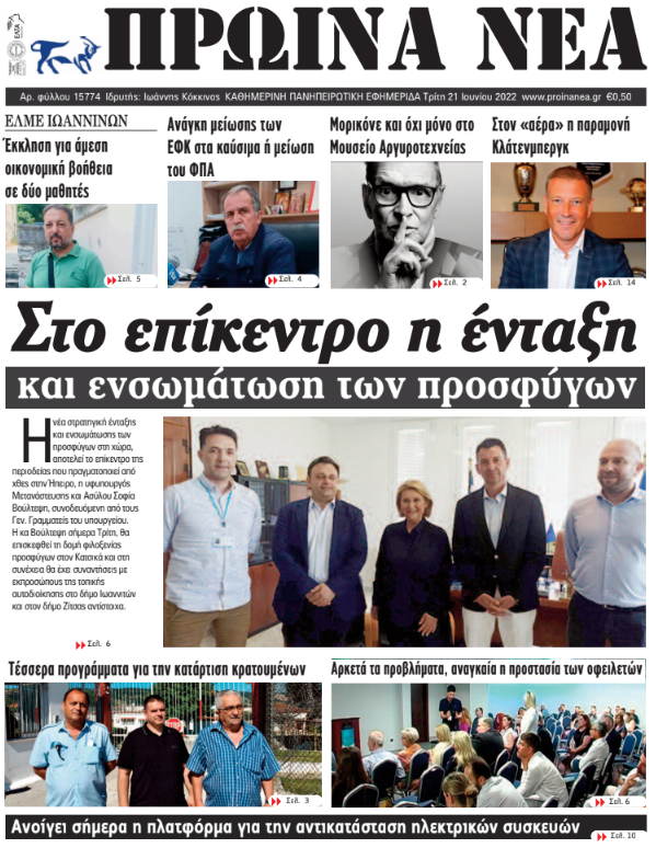 Διαβάστε στα πρωτοσέλιδα των γιαννιώτικων εφημερίδων της Τρίτης 21 Ιουνίου