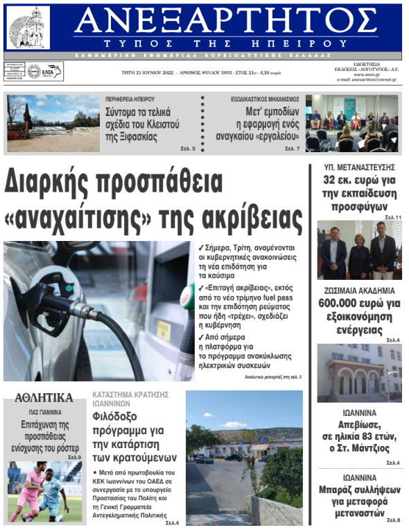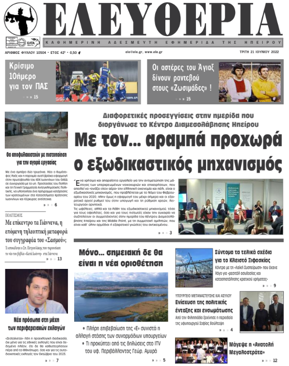 Διαβάστε στα πρωτοσέλιδα των γιαννιώτικων εφημερίδων της Τρίτης 21 Ιουνίου