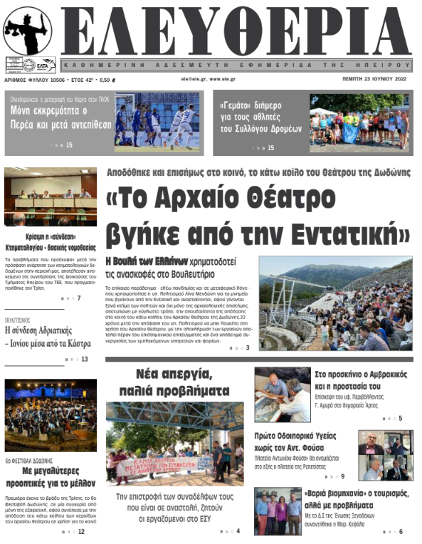 ΑρχικήTOP STORIES TOP STORIESΗΠΕΙΡΟΣ Τα πρωτοσέλιδα των γιαννιώτικων εφημερίδων 23.06.2022 90 FacebookTwitterWhatsAppEmailΤυπώνωViber Διαβάστε στα πρωτοσέλιδα των γιαννιώτικων εφημερίδων της Πέμπτης 23 Ιουνίου TagsΓΙΑΝΝΙΩΤΙΚΕΣ ΕΦΗΜΕΡΙΔΕΣΠΡΩΤΟΣΕΛΙΔΑ FacebookTwitterWhatsAppEmailΤυπώνωViber Προηγούμενο άρθροΠρώτη επιλογή για τους επισκέπτες το ΝησίΕπόμενο άρθροΚρίσιμη η «σύνδεση» Κτηματολογίου – δασικής νομοθεσίας ΣΧΕΤΙΚΑ ΑΡΘΡΑ Τα πρωτοσέλιδα των γιαννιώτικων εφημερίδων TOP STORIES 28.10.2025 Τα πρωτοσέλιδα των γιαννιώτικων εφημερίδων ΗΠΕΙΡΟΣ 25.10.2025 Τα πρωτοσέλιδα των γιαννιώτικων εφημερίδων ΗΠΕΙΡΟΣ 24.10.2025 Τα πρωτοσέλιδα των γιαννιώτικων εφημερίδων ΗΠΕΙΡΟΣ 23.10.2025 Τα πρωτοσέλιδα των γιαννιώτικων εφημερίδων ΗΠΕΙΡΟΣ 22.10.2025 Τα πρωτοσέλιδα των γιαννιώτικων εφημερίδων ΗΠΕΙΡΟΣ 21.10.2025 ΣΤΗΝ ΙΔΙΑ ΚΑΤΗΓΟΡΙΑ Οδηγείται σε «ναυάγιο» το έργο των led; ΗΠΕΙΡΟΣ 29.10.2025 Μπήκε μπροστά το ΥΠΕΝ για την «ανορθογραφία» στη Φιλιππιάδα ΗΠΕΙΡΟΣ 29.10.2025 Ενημερωτικό διήμερο για την προσβασιμότητα ατόμων με προβλήματα όρασης ΗΠΕΙΡΟΣ 29.10.2025 Δήμος Κόνιτσας: Με λαμπρότητα ο εορτασμός της Εθνικής Επετείου της 28ης Οκτωβρίου ΗΠΕΙΡΟΣ 29.10.2025 Δυναμική αντίδραση για την αποτροπή «λουκέτου» στα ΕΛΤΑ Πραμάντων ΗΠΕΙΡΟΣ 29.10.2025 Με λαμπρότητα ο εορτασμός της Εθνικής Επετείου της 28ης Οκτωβρίου στον Δήμο Ζίτσας ΗΠΕΙΡΟΣ 29.10.2025 ΜΗ ΧΑΣΕΤΕ Οδηγείται σε «ναυάγιο» το έργο των led; Μπήκε μπροστά το ΥΠΕΝ για την «ανορθογραφία» στη Φιλιππιάδα «Ανοργάνωτο» βαρομετρικό χαμηλό έρχεται την Παρασκευή Με λαμπρότητα η παρέλαση για την επέτειο του «ΟΧΙ» Τα πρωτοσέλιδα των γιαννιώτικων εφημερίδων ΔΗΜΟΦΙΛΗ Μπήκε μπροστά το ΥΠΕΝ για την «ανορθογραφία» στη Φιλιππιάδα Στιγμές ιστορίας και συγκίνησης στους «Ζωσιμάδες» Ενημερωτικό διήμερο για την προσβασιμότητα ατόμων με προβλήματα όρασης Mε κορωνοϊό ο Πρωθυπουργός – Μέσω τηλεδιάσκεψης το υπουργικό συμβούλιο Μιχαηλίδου: Ξεκινά το Πρόγραμμα των Σχολικών Γευμάτων για 231.062 μαθητές δημοτικού