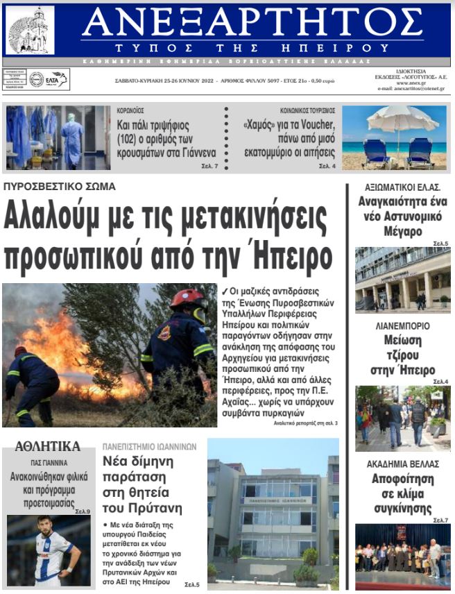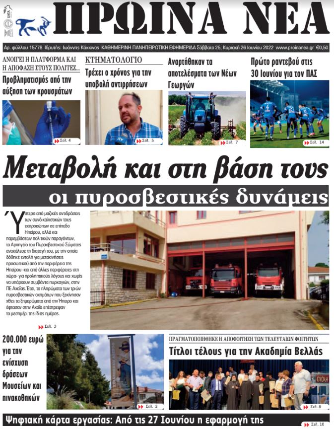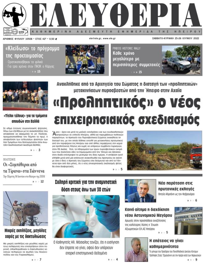 Διαβάστε στα πρωτοσέλιδα των γιαννιώτικων εφημερίδων του Σαββατοκύριακου 25-26 Ιουνίου