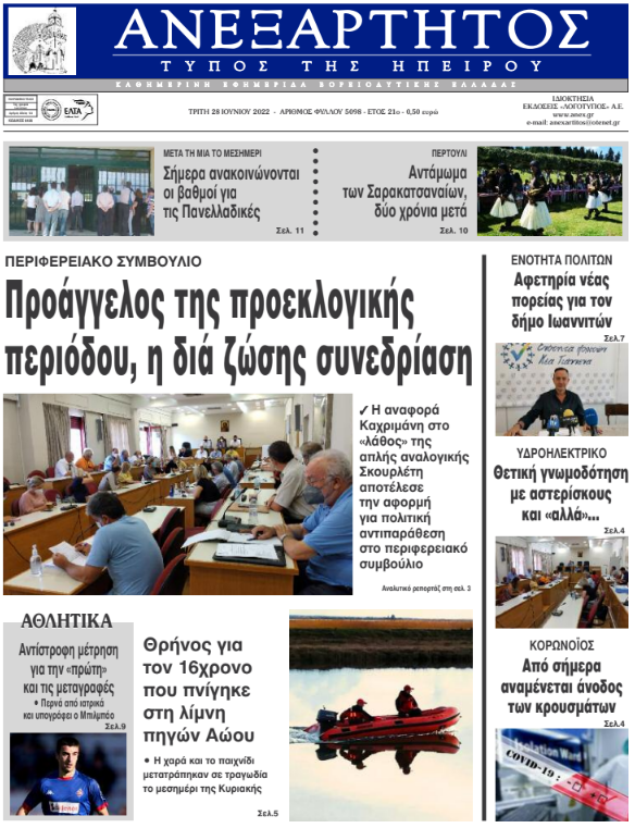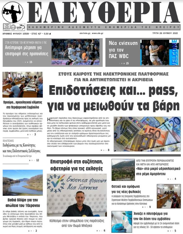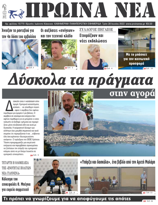 Διαβάστε στα πρωτοσέλιδα των γιαννιώτικων εφημερίδων της Τρίτης 28 Ιουνίου