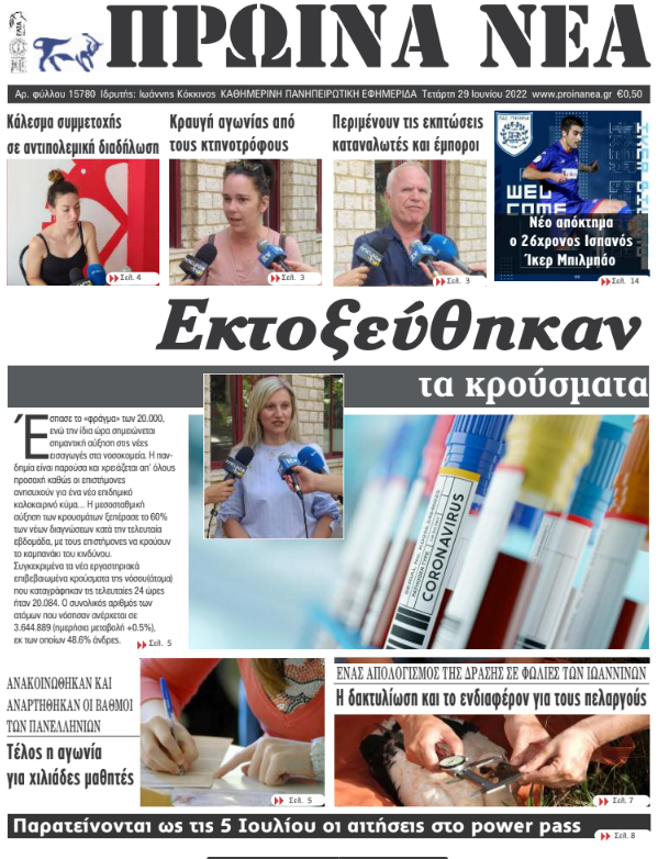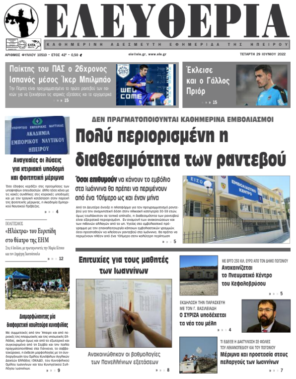 ΑρχικήΕΙΔΗΣΕΙΣΗΠΕΙΡΟΣ ΗΠΕΙΡΟΣ Τα πρωτοσέλιδα των γιαννιώτικων εφημερίδων 29.06.2022 128 FacebookTwitterWhatsAppEmailΤυπώνωViber Διαβάστε στα πρωτοσέλιδα των γιαννιώτικων εφημερίδων της Τετάρτης 29 Ιουνίου TagsΓΙΑΝΝΙΩΤΙΚΕΣ ΕΦΗΜΕΡΙΔΕΣΠΡΩΤΟΣΕΛΙΔΑ FacebookTwitterWhatsAppEmailΤυπώνωViber Προηγούμενο άρθροΣαρηγιάννης: Η αύξηση κρουσμάτων φέρνει στις ΜΕΘ 400 διασωληνωμένους έως τα τέλη ΙουλίουΕπόμενο άρθροΜέριμνα και προστασία στους πελαργούς των Ιωαννίνων ΣΧΕΤΙΚΑ ΑΡΘΡΑ Τα πρωτοσέλιδα των γιαννιώτικων εφημερίδων TOP STORIES 31.12.2025 Τα πρωτοσέλιδα των γιαννιώτικων εφημερίδων ΗΠΕΙΡΟΣ 30.12.2025 Τα πρωτοσέλιδα των γιαννιώτικων εφημερίδων ΗΠΕΙΡΟΣ 24.12.2025 Τα πρωτοσέλιδα των γιαννιώτικων εφημερίδων ΗΠΕΙΡΟΣ 23.12.2025 Τα πρωτοσέλιδα των γιαννιώτικων εφημερίδων ΗΠΕΙΡΟΣ 19.12.2025 Τα πρωτοσέλιδα των γιαννιώτικων εφημερίδων ΗΠΕΙΡΟΣ 18.12.2025 ΣΤΗΝ ΙΔΙΑ ΚΑΤΗΓΟΡΙΑ Κοινωνικές δράσεις από την Αστυνομική Διεύθυνση Ηπείρου ΗΠΕΙΡΟΣ 01.01.2026 ΓΙΑΝΝΗΣ ΣΤΕΦΟΣ – Βολές κατά Καχριμάνη για τη «φωτογραφική» πρόσληψη ΗΠΕΙΡΟΣ 31.12.2025 Παράταση αγωνίας για τους αντιδημάρχους ΗΠΕΙΡΟΣ 31.12.2025 Πρωτοχρονιάτικα κάλαντα στο Δημαρχείο Ιωαννίνων ΗΠΕΙΡΟΣ 31.12.2025 Τα κάλαντα της Πρωτοχρονιάς στην Περιφέρεια Ηπείρου ΗΠΕΙΡΟΣ 31.12.2025 Νέες διαδρομές περιήγησης στον αρχαιολογικό χώρο της Νικόπολης ΗΠΕΙΡΟΣ 31.12.2025 ΜΗ ΧΑΣΕΤΕ ΓΙΑΝΝΗΣ ΣΤΕΦΟΣ – Βολές κατά Καχριμάνη για τη «φωτογραφική» πρόσληψη Παράταση αγωνίας για τους αντιδημάρχους Νέες διαδρομές περιήγησης στον αρχαιολογικό χώρο της Νικόπολης Εγνατία Οδός: Αυξάνονται τα διόδια, καταργείται το EgnatiaPass Αυξήσεις στα διόδια από 1η Ιανουαρίου 2026 ΔΗΜΟΦΙΛΗ Κοινωνικές δράσεις από την Αστυνομική Διεύθυνση Ηπείρου ΜΕΧΡΙ 31 ΙΑΝΟΥΑΡΙΟΥ -Τροποποιήσεις στο Ε9 για τον ΕΝΦΙΑ Η Γαλλία ετοιμάζεται να απαγορεύσει στους εφήβους την πρόσβαση στα social media Το Σίδνεϊ υποδέχθηκε το 2026 με φαντασμαγορική επίδειξη πυροτεχνημάτων (βίντεο) Μειωμένος ΦΠΑ 30% από σήμερα σε αυτά τα νησιά