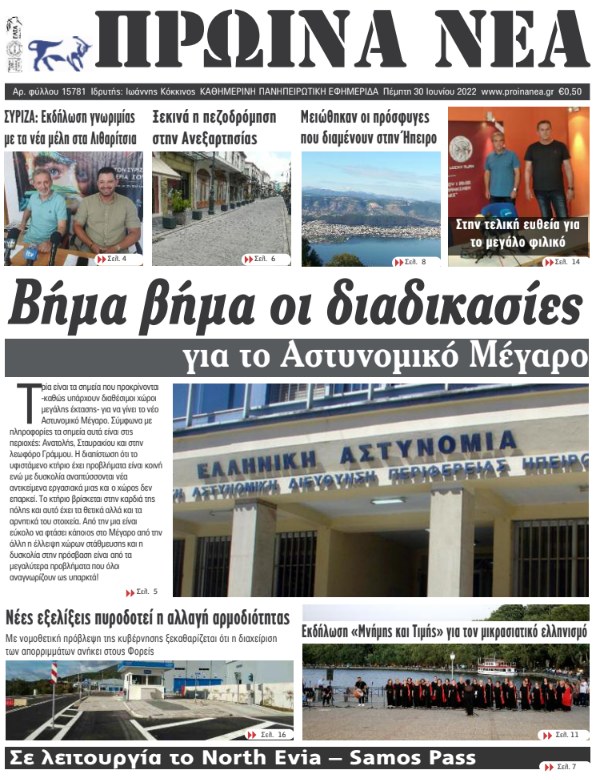 Διαβάστε στα πρωτοσέλιδα των γιαννιώτικων εφημερίδων της Πέμπτης 30 Ιουνίου