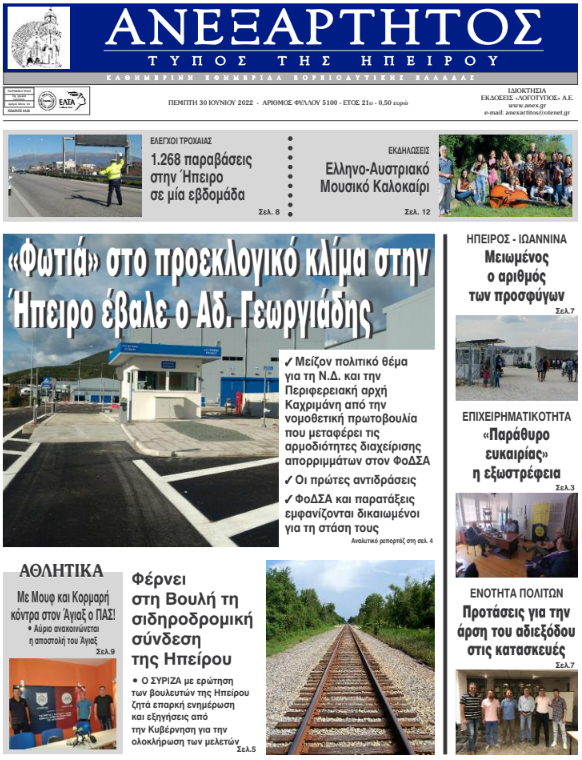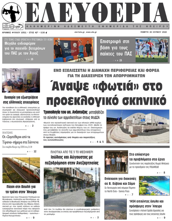 Διαβάστε στα πρωτοσέλιδα των γιαννιώτικων εφημερίδων της Πέμπτης 30 Ιουνίου