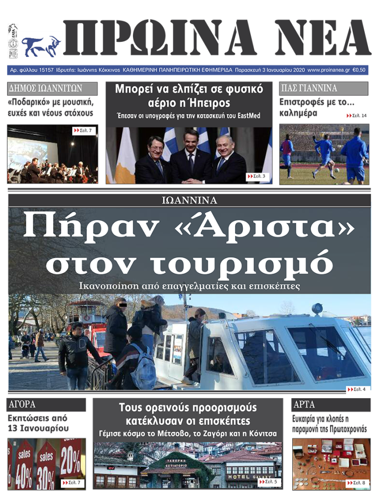 Διαβάστε στα πρωτοσέλιδα των γιαννιώτικων εφημερίδων σήμερα, Παρασκευή 3 Ιανουαρίου.