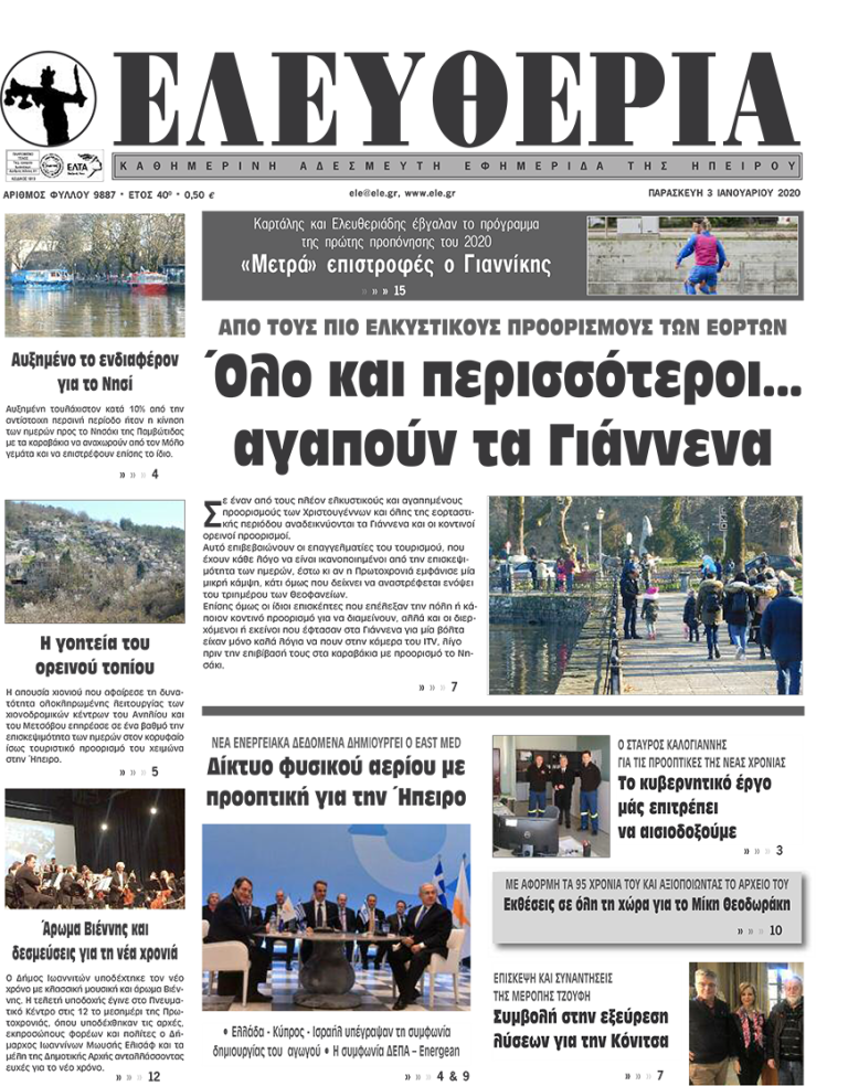 Διαβάστε στα πρωτοσέλιδα των γιαννιώτικων εφημερίδων σήμερα, Παρασκευή 3 Ιανουαρίου.