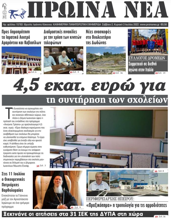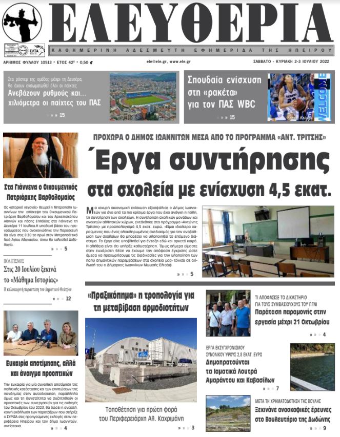 ΑρχικήTOP STORIES TOP STORIESΗΠΕΙΡΟΣ Τα πρωτοσέλιδα των γιαννιώτικων εφημερίδων 02.07.2022 164 FacebookTwitterWhatsAppEmailΤυπώνωViber Διαβάστε στα πρωτοσέλιδα των γιαννιώτικων εφημερίδων του Σαββατοκύριακου 2-3 Ιουλίου TagsΓΙΑΝΝΙΩΤΙΚΕΣ ΕΦΗΜΕΡΙΔΕΣΠΡΩΤΟΣΕΛΙΔΑ FacebookTwitterWhatsAppEmailΤυπώνωViber Προηγούμενο άρθροΠώς προστατευόμαστε από υψηλές θερμοκρασίες και καύσωναΕπόμενο άρθροΆρτα: Τους άδειασαν τους λογαριασμούς με τη μέθοδο phishing ΣΧΕΤΙΚΑ ΑΡΘΡΑ Τα πρωτοσέλιδα των γιαννιώτικων εφημερίδων TOP STORIES 15.11.2025 Τα πρωτοσέλιδα των γιαννιώτικων εφημερίδων ΗΠΕΙΡΟΣ 14.11.2025 Τα πρωτοσέλιδα των γιαννιώτικων εφημερίδων ΗΠΕΙΡΟΣ 13.11.2025 Τα πρωτοσέλιδα των γιαννιώτικων εφημερίδων ΗΠΕΙΡΟΣ 12.11.2025 Τα πρωτοσέλιδα των γιαννιώτικων εφημερίδων ΗΠΕΙΡΟΣ 11.11.2025 Τα πρωτοσέλιδα των γιαννιώτικων εφημερίδων TOP STORIES 08.11.2025 ΣΤΗΝ ΙΔΙΑ ΚΑΤΗΓΟΡΙΑ Ένας ζωντανός καθρέφτης της παράδοσης με βλέμμα στο μέλλον ΗΠΕΙΡΟΣ 15.11.2025 Μαθηματική έρευνα και κριτική σκέψη στην εποχή της Τεχνητής Νοημοσύνης ΗΠΕΙΡΟΣ 15.11.2025 Τα πρωτοσέλιδα των γιαννιώτικων εφημερίδων TOP STORIES 15.11.2025 ΑΠΟ ΤΗΝ ΠΕΡΙΦΕΡΕΙΑ -Συστάσεις λόγω υψηλών συγκεντρώσεων αιωρούμενων σωματιδίων ΗΠΕΙΡΟΣ 15.11.2025 Εκλογή του Παναγιώτη Σουκάκου στην Ακαδημία Αθηνών ΗΠΕΙΡΟΣ 14.11.2025 Εντυπωσιακό το αποτέλεσμα της αναστήλωσης στο τζαμί Καλούτσανης ΗΠΕΙΡΟΣ 14.11.2025 ΜΗ ΧΑΣΕΤΕ Ένας ζωντανός καθρέφτης της παράδοσης με βλέμμα στο μέλλον Μαθηματική έρευνα και κριτική σκέψη στην εποχή της Τεχνητής Νοημοσύνης Τα πρωτοσέλιδα των γιαννιώτικων εφημερίδων Εντυπωσιακό το αποτέλεσμα της αναστήλωσης στο τζαμί Καλούτσανης Ενιαίο αστικό πάρκο στις παλιές στρατιωτικές φυλακές ΔΗΜΟΦΙΛΗ Τα του Καίσαρος… Αύξηση του προϋπολογισμού των Περιφερειακών Προγραμμάτων Ανάπτυξης Ένας ζωντανός καθρέφτης της παράδοσης με βλέμμα στο μέλλον Ανακαλούνται οι δασμοί Τραμπ σε καφέ, κακάο και δεκάδες άλλα τρόφιμα Έρχεται θερμή εισβολή με σκόνη και υψηλές θερμοκρασίες