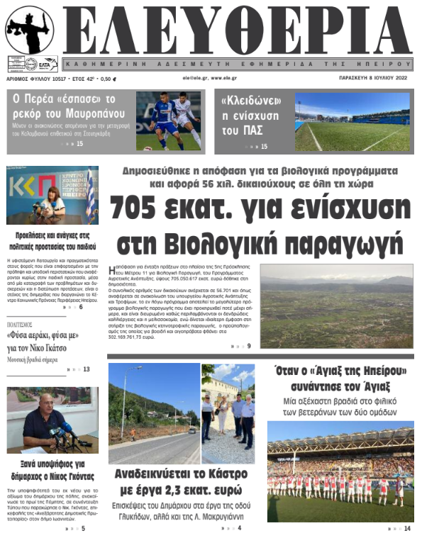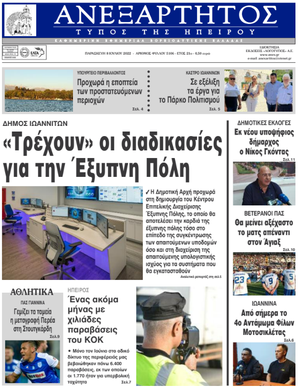Διαβάστε στα πρωτοσέλιδα των γιαννιώτικων εφημερίδων της Παρασκευής 8 Ιουλίου