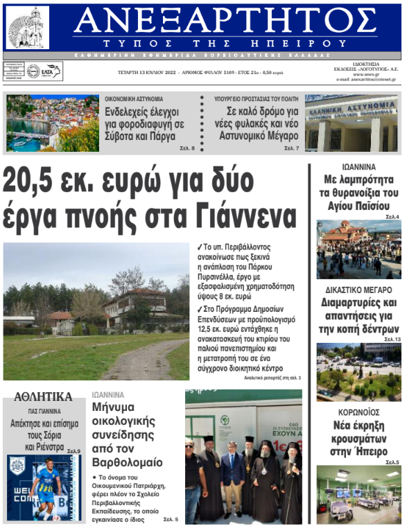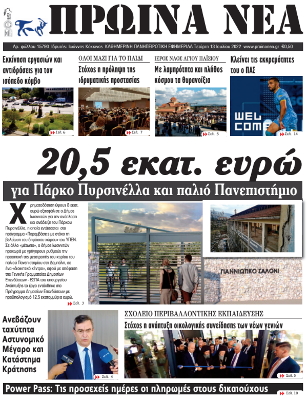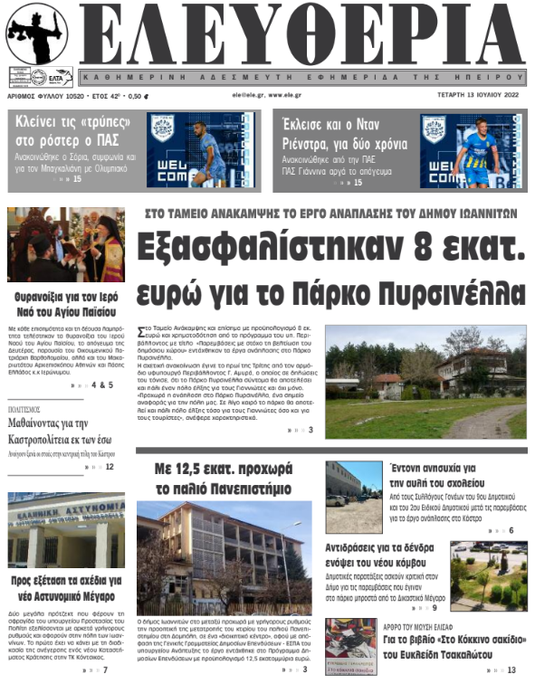 Διαβάστε στα πρωτοσέλιδα των γιαννιώτικων εφημερίδων της Τετάρτης 13 Ιουλίου