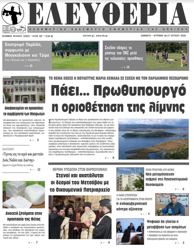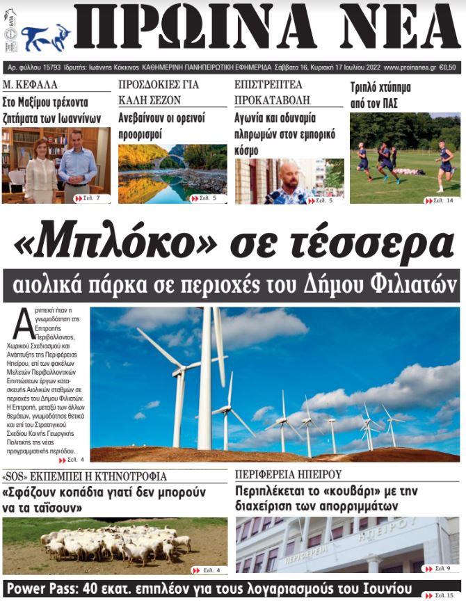 ΑρχικήTOP STORIES TOP STORIESΗΠΕΙΡΟΣ Τα πρωτοσέλιδα των γιαννιώτικων εφημερίδων 16.07.2022 148 FacebookTwitterWhatsAppEmailΤυπώνωViber Διαβάστε στα πρωτοσέλιδα των γιαννιώτικων εφημερίδων του Σαββατοκύριακου 16-17 Ιουλίου TagsΓΙΑΝΝΙΩΤΙΚΕΣ ΕΦΗΜΕΡΙΔΕΣΠΡΩΤΟΣΕΛΙΔΑ FacebookTwitterWhatsAppEmailΤυπώνωViber Προηγούμενο άρθροΑποχρώσεις – Το παλιό πανεπιστήμιο και η ιστορική μνήμηΕπόμενο άρθροΕΠΙΤΡΟΠΗ ΠΕΡΙΒΑΛΛΟΝΤΟΣ – «Στοπ» σε τέσσερα αιολικά πάρκα στον Δήμο Φιλιατών ΣΧΕΤΙΚΑ ΑΡΘΡΑ Τα πρωτοσέλιδα των γιαννιώτικων εφημερίδων TOP STORIES 27.11.2025 Τα πρωτοσέλιδα των γιαννιώτικων εφημερίδων ΗΠΕΙΡΟΣ 26.11.2025 Τα πρωτοσέλιδα των γιαννιώτικων εφημερίδων ΗΠΕΙΡΟΣ 25.11.2025 Τα πρωτοσέλιδα των γιαννιώτικων εφημερίδων ΗΠΕΙΡΟΣ 22.11.2025 Τα πρωτοσέλιδα των γιαννιώτικων εφημερίδων ΗΠΕΙΡΟΣ 21.11.2025 Τα πρωτοσέλιδα των γιαννιώτικων εφημερίδων TOP STORIES 20.11.2025 ΣΤΗΝ ΙΔΙΑ ΚΑΤΗΓΟΡΙΑ Στο Μέτσοβο η Ολυμπιακή Φλόγα την Παρασκευή ΗΠΕΙΡΟΣ 27.11.2025 Σύλληψη για ηχορύπανση από κατάστημα διασκέδασης ΗΠΕΙΡΟΣ 27.11.2025 Δικογραφία για απάτη 3.000 ευρώ στην Άρτα ΗΠΕΙΡΟΣ 27.11.2025 Πότε θα καταβληθούν οι συντάξεις Ιανουαρίου TOP STORIES 27.11.2025 Αιτήσεις για αποζημίωση πλημμυροπαθών στον Δήμο Ζηρού – Τα δικαιολογητικά ΗΠΕΙΡΟΣ 27.11.2025 Κατολίσθηση στην Άγναντα – Ανήσυχοι οι κάτοικοι ΗΠΕΙΡΟΣ 27.11.2025 ΜΗ ΧΑΣΕΤΕ Μητσοτάκης: Από Παρασκευή η επιστροφή ενοικίου για 1 εκατ. πολίτες Πότε θα καταβληθούν οι συντάξεις Ιανουαρίου Κατολίσθηση στην Άγναντα – Ανήσυχοι οι κάτοικοι Σε ετοιμότητα Περιφέρεια και δήμοι για το νέο κύμα κακοκαιρίας Κατηγορίες κατά του Δήμου για αδιαφορία μετά την πτώση δέντρου ΔΗΜΟΦΙΛΗ Μεγάλη φωτιά στο Χονγκ Κονγκ – Στους 55 οι νεκροί Στην Τουρκία ο Πάπας Λέων ΙΔ’ – Ιστορική επίσκεψη στο Φανάρι Έρχεται νέο μάθημα σε Δημοτικό, Γυμνάσιο και Λύκειο Σε τροχιά ενεργειακής αυτονομίας ο Δήμος Ζίτσας Άνοιγμα με πτώση 0,14% στο Χρηματιστήριο Αθηνών