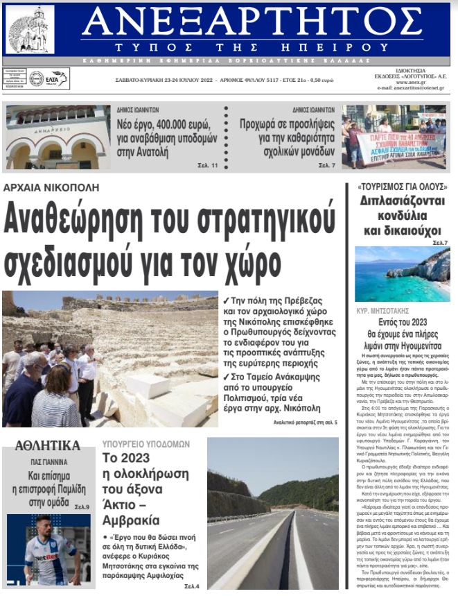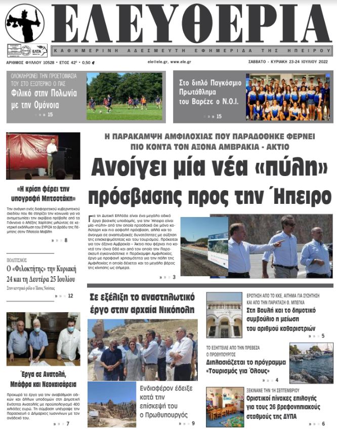 ΑρχικήΕΙΔΗΣΕΙΣΗΠΕΙΡΟΣ ΗΠΕΙΡΟΣ Τα πρωτοσέλιδα των γιαννιώτικων εφημερίδων 23.07.2022 109 FacebookTwitterWhatsAppEmailΤυπώνωViber Διαβάστε στα πρωτοσέλιδα των γιαννιώτικων εφημερίδων του Σαββατοκύριακου 23-24 Ιουλίου TagsΓΙΑΝΝΙΩΤΙΚΕΣ ΕΦΗΜΕΡΙΔΕΣΠΡΩΤΟΣΕΛΙΔΑ FacebookTwitterWhatsAppEmailΤυπώνωViber Προηγούμενο άρθροΚαύσωνας: Έρχονται 40αρια – Οι δύο πιο δύσκολες ημέρες – Αναλυτική πρόγνωσηΕπόμενο άρθροΠερίπου 8,6 εκ. θα βιώσουν θερμοκρασίες πάνω από 37 βαθμούς την Κυριακή ΣΧΕΤΙΚΑ ΑΡΘΡΑ Τα πρωτοσέλιδα των γιαννιώτικων εφημερίδων TOP STORIES 18.11.2025 Τα πρωτοσέλιδα των γιαννιώτικων εφημερίδων ΗΠΕΙΡΟΣ 15.11.2025 Τα πρωτοσέλιδα των γιαννιώτικων εφημερίδων ΗΠΕΙΡΟΣ 14.11.2025 Τα πρωτοσέλιδα των γιαννιώτικων εφημερίδων ΗΠΕΙΡΟΣ 13.11.2025 Τα πρωτοσέλιδα των γιαννιώτικων εφημερίδων ΗΠΕΙΡΟΣ 12.11.2025 Τα πρωτοσέλιδα των γιαννιώτικων εφημερίδων ΗΠΕΙΡΟΣ 11.11.2025 ΣΤΗΝ ΙΔΙΑ ΚΑΤΗΓΟΡΙΑ Βελτίωση και επέκταση οριζόντιας σήμανσης ΗΠΕΙΡΟΣ 18.11.2025 Πράσινο φως για την κατασκευή νέου Νηπιαγωγείου στα Γιάννενα ΗΠΕΙΡΟΣ 18.11.2025 250.000 ευρώ για νέες ψηφιακές υπηρεσίες στον Δήμο Ιωαννιτών ΗΠΕΙΡΟΣ 18.11.2025 875.000 ευρώ για την αναβάθμιση υποδομών στο Κουτσελιό ΗΠΕΙΡΟΣ 18.11.2025 ΕΜΥ: Επικίνδυνες βροχές σε Ιόνιο, Ήπειρο και Αιτωλοακαρνανία ΗΠΕΙΡΟΣ 18.11.2025 Μήνυμα της ΛΕ.Μ.Ι. για την Παγκόσμια Ημέρα Μνήμης Θυμάτων Τροχαίων ΗΠΕΙΡΟΣ 18.11.2025 ΜΗ ΧΑΣΕΤΕ 250.000 ευρώ για νέες ψηφιακές υπηρεσίες στον Δήμο Ιωαννιτών ΕΜΥ: Επικίνδυνες βροχές σε Ιόνιο, Ήπειρο και Αιτωλοακαρνανία Στο επίκεντρο ακρίβεια, στεγαστική πολιτική και ενεργειακές συμφωνίες «Πάγωσε» το σχέδιο, όχι τα προβλήματα “Βοήθεια στο Σπίτι” μετά τη νοσηλεία ΔΗΜΟΦΙΛΗ Στα ύψη οι τιμές σε μοσχάρι, ψωμί και καφέ Πράσινο φως για την κατασκευή νέου Νηπιαγωγείου στα Γιάννενα Μονιμοποιούνται 423 Πυροσβέστες Πενταετούς Υποχρέωσης Διαδοχικές κακοκαιρίες από σήμερα στη χώρα Συζήτηση για τις ανάγκες και τις προτεραιότητες του Δήμου Ζίτσας