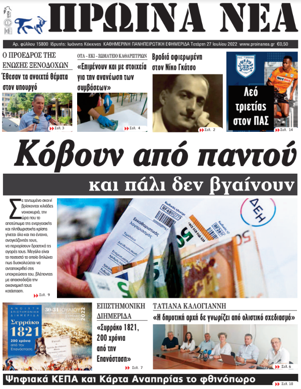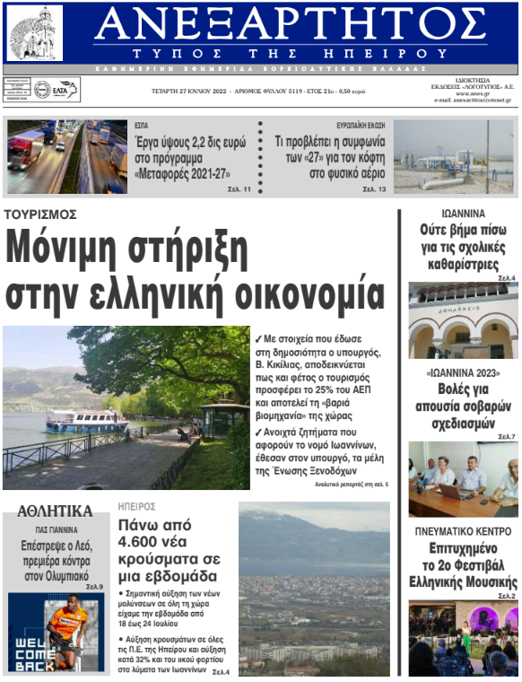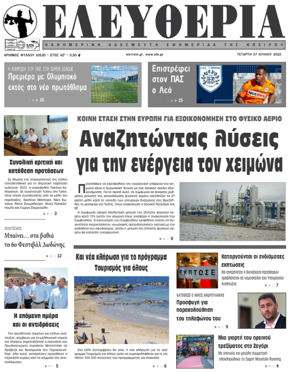 Διαβάστε στα πρωτοσέλιδα των γιαννιώτικων εφημερίδων της Τετάρτης 27 Ιουλίου