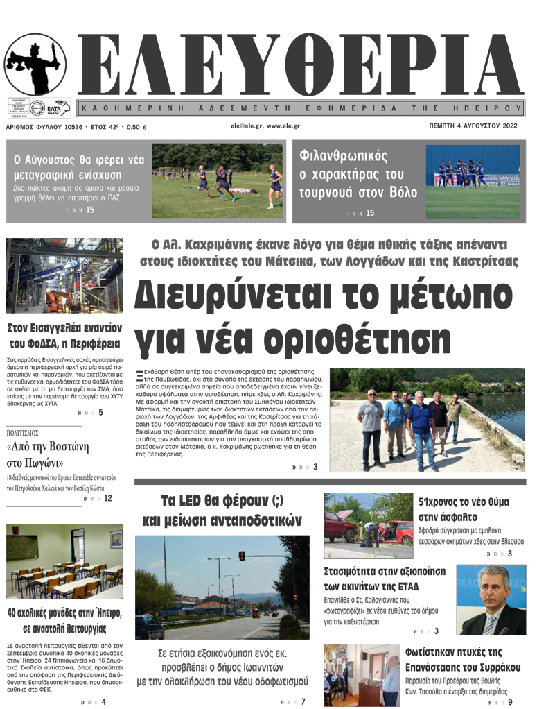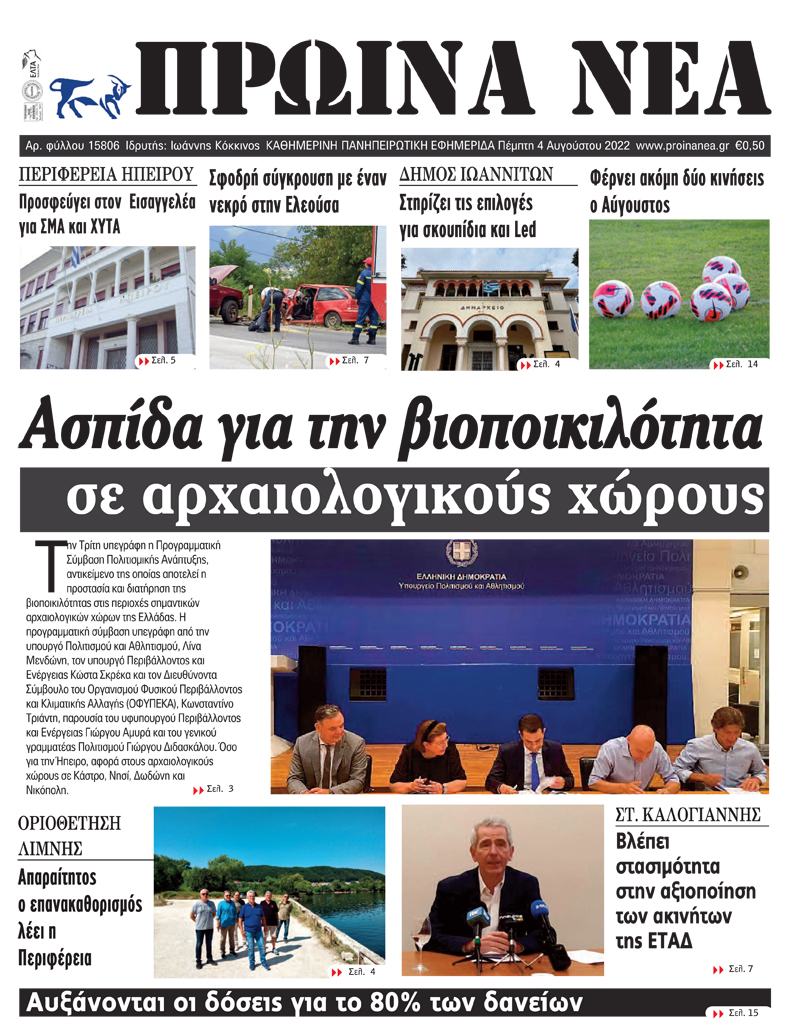 ΑρχικήTOP STORIES TOP STORIESΗΠΕΙΡΟΣ Τα πρωτοσέλιδα των γιαννιώτικων εφημερίδων 04.08.2022 196 FacebookTwitterWhatsAppEmailΤυπώνωViber Διαβάστε στα πρωτοσέλιδα των γιαννιώτικων εφημερίδων της Πέμπτης 4 Αυγούστου TagsΓΙΑΝΝΙΩΤΙΚΕΣ ΕΦΗΜΕΡΙΔΕΣΠΡΩΤΟΣΕΛΙΔΑ FacebookTwitterWhatsAppEmailΤυπώνωViber Προηγούμενο άρθροΥπέρ της νέας οριοθέτησης η ΠεριφέρειαΕπόμενο άρθροΤζανάκης: Τριπλάσιος ο αριθμός των πραγματικών κρουσμάτων ΣΧΕΤΙΚΑ ΑΡΘΡΑ Τα πρωτοσέλιδα των γιαννιώτικων εφημερίδων TOP STORIES 07.11.2025 Τα πρωτοσέλιδα των γιαννιώτικων εφημερίδων ΗΠΕΙΡΟΣ 06.11.2025 Τα πρωτοσέλιδα των γιαννιώτικων εφημερίδων ΗΠΕΙΡΟΣ 05.11.2025 Τα πρωτοσέλιδα των γιαννιώτικων εφημερίδων ΗΠΕΙΡΟΣ 04.11.2025 Τα πρωτοσέλιδα των γιαννιώτικων εφημερίδων TOP STORIES 01.11.2025 Τα πρωτοσέλιδα των γιαννιώτικων εφημερίδων ΗΠΕΙΡΟΣ 31.10.2025 ΣΤΗΝ ΙΔΙΑ ΚΑΤΗΓΟΡΙΑ Μαθητές του 5ου Γυμνασίου Ιωαννίνων στην κορυφή του Μιτσικελίου ΗΠΕΙΡΟΣ 07.11.2025 Επίτιμος Διδάκτορας του Τμήματος Φιλολογίας ο Γιώργος Κεχαγιόγλου ΗΠΕΙΡΟΣ 07.11.2025 Οι ναυαγοσωστικές δαπάνες «πνίγουν» τους δήμους ΗΠΕΙΡΟΣ 07.11.2025 Ενημερωτική ημερίδα στα Ιωάννινα για τη δωρεά και μεταμόσχευση οργάνων ΗΠΕΙΡΟΣ 07.11.2025 Εγκαίνια στο Κατάστημα Αναμνηστικών του Πανεπιστημίου Ιωαννίνων ΗΠΕΙΡΟΣ 07.11.2025 Εντοπίστηκε πεζοπόρος που είχε χάσει τον προσανατολισμό του στο Ανήλιο Μετσόβου ΗΠΕΙΡΟΣ 07.11.2025 ΜΗ ΧΑΣΕΤΕ Οι ναυαγοσωστικές δαπάνες «πνίγουν» τους δήμους Έκτακτο δελτίο επιδείνωσης από την ΕΜΥ – Πού θα βρέχει το επόμενο τριήμερο Μπαλωθιές τέλος στην Κρήτη – Τα μέτρα για την παράνομη οπλοκατοχή Χωρίς πινακίδες παραμένουν χιλιάδες δίκυκλα Ενστάσεις δικυκλιστών για τις θερμοπλαστικές διαβάσεις ΔΗΜΟΦΙΛΗ Γ. ΣΤΥΛΙΟΣ -Μείωση φόρων που ενισχύει το πραγματικό εισόδημα Ιταλία: Αυξάνονται οι αιωνόβιοι στη χώρα -2.000 περισσότεροι σε σχέση με πέρυσι Η Ευρωπαϊκή Ένωση στηρίζει την καθαρή μετάβαση ΤΗΝ ΔΕΥΤΕΡΑ -Νομαρχιακή Συνδιάσκεψη του ΣΥΡΙΖΑ ΠΣ Ιωαννίνων