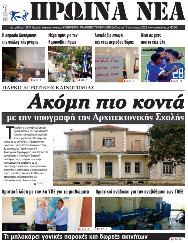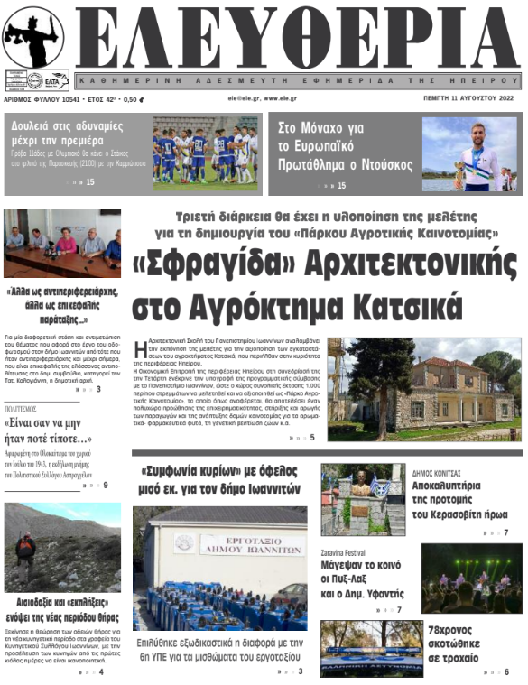 ΑρχικήTOP STORIES TOP STORIESΗΠΕΙΡΟΣ Τα πρωτοσέλιδα των γιαννιώτικων εφημερίδων 11.08.2022 201 FacebookTwitterWhatsAppEmailΤυπώνωViber Διαβάστε στα πρωτοσέλιδα των γιαννιώτικων εφημερίδων της Πέμπτης 11 Αυγούστου TagsΓΙΑΝΝΙΩΤΙΚΕΣ ΕΦΗΜΕΡΙΔΕΣΠΡΩΤΟΣΕΛΙΔΑ FacebookTwitterWhatsAppEmailΤυπώνωViber Προηγούμενο άρθροΜεσσήνη: Επίθεση με χημικό υγρό σε 49χρονη –Νοσηλεύεται με σοβαρά εγκαύματα στο πρόσωποΕπόμενο άρθροΑισιοδοξία και «εκπλήξεις» ενόψει της νέας περιόδου θήρας ΣΧΕΤΙΚΑ ΑΡΘΡΑ Τα πρωτοσέλιδα των γιαννιώτικων εφημερίδων TOP STORIES 20.11.2025 Τα πρωτοσέλιδα των γιαννιώτικων εφημερίδων ΗΠΕΙΡΟΣ 19.11.2025 Τα πρωτοσέλιδα των γιαννιώτικων εφημερίδων ΗΠΕΙΡΟΣ 18.11.2025 Τα πρωτοσέλιδα των γιαννιώτικων εφημερίδων ΗΠΕΙΡΟΣ 15.11.2025 Τα πρωτοσέλιδα των γιαννιώτικων εφημερίδων ΗΠΕΙΡΟΣ 14.11.2025 Τα πρωτοσέλιδα των γιαννιώτικων εφημερίδων ΗΠΕΙΡΟΣ 13.11.2025 ΣΤΗΝ ΙΔΙΑ ΚΑΤΗΓΟΡΙΑ Ανακοινώθηκε η ολοκλήρωση της εξαγοράς της Γαλακτοβιομηχανίας «ΔΩΔΩΝΗ» ΗΠΕΙΡΟΣ 20.11.2025 Ένταση στο Δημοτικό Συμβούλιο για τη μετατόπιση περιπτέρου στην κεντρική πλατεία ΗΠΕΙΡΟΣ 20.11.2025 Περιμένοντας λύση από την ελεγχόμενη στάθμευση ΗΠΕΙΡΟΣ 20.11.2025 Επικαλούνται τη συναίνεση, αλλά ενισχύουν τη σύγχυση ΗΠΕΙΡΟΣ 20.11.2025 Ζημιές από την κακοκαιρία στο Βαγκαλιάτι με πτώσεις δέντρων και κολώνας ΗΠΕΙΡΟΣ 20.11.2025 ΤΕΕ Ηπείρου: Αίτια, επιπτώσεις και στρατηγικές αντιμετώπισης της αιθαλομίχλης TOP STORIES 20.11.2025 ΜΗ ΧΑΣΕΤΕ Περιμένοντας λύση από την ελεγχόμενη στάθμευση Επικαλούνται τη συναίνεση, αλλά ενισχύουν τη σύγχυση ΤΕΕ Ηπείρου: Αίτια, επιπτώσεις και στρατηγικές αντιμετώπισης της αιθαλομίχλης Έντονες βροχοπτώσεις στην Ήπειρο – Δεκάδες περιστατικά για την Πυροσβεστική Έκτακτο δελτίο επιδείνωσης από την ΕΜΥ – Εντείνονται οι καταιγίδες από τη νύχτα ΔΗΜΟΦΙΛΗ Πλημμύρισε (ξανά) η οδός Καλομοίρη στο Κ. Νεοχωρόπουλο Ανεξέλεγκτη συσσώρευση αιτήσεων για μικρά υδροηλεκτρικά στην Ήπειρο ΕΟΔΥ -Μείωση στη θετικότητα του κορωνοϊού Η Χαμάς κατηγορεί το Ισραήλ για «επικίνδυνη κλιμάκωση» που απειλεί την εκεχειρία Ρεκόρ ψήφων και πρωτιά της Ανεξάρτητης Κίνησης στην ΑΔΕΔΥ Ιωαννίνων
