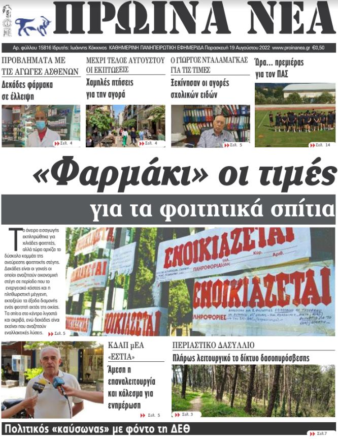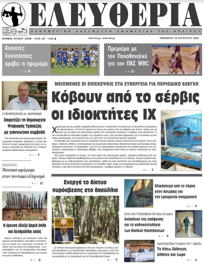 ΑρχικήTOP STORIES TOP STORIESΗΠΕΙΡΟΣ Τα πρωτοσέλιδα των γιαννιώτικων εφημερίδων 19.08.2022 122 FacebookTwitterWhatsAppEmailΤυπώνωViber Διαβάστε στα πρωτοσέλιδα των γιαννιώτικων εφημερίδων της Παρασκευής 19 Αυγούστου TagsΓΙΑΝΝΙΩΤΙΚΕΣ ΕΦΗΜΕΡΙΔΕΣΠΡΩΤΟΣΕΛΙΔΑ FacebookTwitterWhatsAppEmailΤυπώνωViber Προηγούμενο άρθροΔυτική Αφρική: Ανακαλύφθηκε κρατήρας πρόσκρουσης αστεροειδούςΕπόμενο άρθροΧαιρετίζει τη δημιουργία Ψηφιακής Τράπεζας με γιαννιώτικη συμβολή ΣΧΕΤΙΚΑ ΑΡΘΡΑ Τα πρωτοσέλιδα των γιαννιώτικων εφημερίδων TOP STORIES 13.11.2025 Τα πρωτοσέλιδα των γιαννιώτικων εφημερίδων ΗΠΕΙΡΟΣ 12.11.2025 Τα πρωτοσέλιδα των γιαννιώτικων εφημερίδων ΗΠΕΙΡΟΣ 11.11.2025 Τα πρωτοσέλιδα των γιαννιώτικων εφημερίδων TOP STORIES 08.11.2025 Τα πρωτοσέλιδα των γιαννιώτικων εφημερίδων ΗΠΕΙΡΟΣ 07.11.2025 Τα πρωτοσέλιδα των γιαννιώτικων εφημερίδων ΗΠΕΙΡΟΣ 06.11.2025 ΣΤΗΝ ΙΔΙΑ ΚΑΤΗΓΟΡΙΑ Ανακοινώσεις του Δημάρχου Αρταίων Χριστ. Σιαφάκα στο Δημοτικό Συμβούλιο ΗΠΕΙΡΟΣ 13.11.2025 Δύο συλλήψεις για διαδοχικές κλοπές από σούπερ-μάρκετ ΗΠΕΙΡΟΣ 13.11.2025 Επιχείρηση της Αστυνομίας Ιωαννίνων στον Πειραιά – Σύλληψη για ναρκωτικά και οπλισμό TOP STORIES 13.11.2025 Τιμητική διάκριση για τον Διευθυντή της Ογκολογικής Κλινικής του ΠΓΝΙ, Στέργιο Μπούσιο ΗΠΕΙΡΟΣ 13.11.2025 Χρηματοδοτείται η επέκταση του Γηροκομείου Φιλιατών ΗΠΕΙΡΟΣ 13.11.2025 Έντονη διαμαρτυρία για την ανακατανομή της έκτακτης καταβολής των ΚΑΠ ΗΠΕΙΡΟΣ 13.11.2025 ΜΗ ΧΑΣΕΤΕ Επιχείρηση της Αστυνομίας Ιωαννίνων στον Πειραιά – Σύλληψη για ναρκωτικά και οπλισμό Δένδρο στην πλατεία, συναυλία στο Πνευματικό Κέντρο; «Λεόντειοι όροι» στη σύμβαση για τα LED Συνεργασία με τον ΟΦΥΠΕΚΑ για το παραλίμνιο μέτωπο του Δήμου Ιωαννιτών Στο… περίμενε οι πυρόπληκτοι του Δήμου Ζηρού ΔΗΜΟΦΙΛΗ Στο επίκεντρο της Cop30 η παραπληροφόρηση για το κλίμα Συνεργασία με τον ΟΦΥΠΕΚΑ για το παραλίμνιο μέτωπο του Δήμου Ιωαννιτών Μονόδρομος η νίκη απέναντι στον Νέστο Τιμητική διάκριση για τον Διευθυντή της Ογκολογικής Κλινικής του ΠΓΝΙ, Στέργιο Μπούσιο Μητσοτάκης για ΑΙΓΙΣ: Η μεγαλύτερη επένδυση στην ανθεκτικότητα της πατρίδας