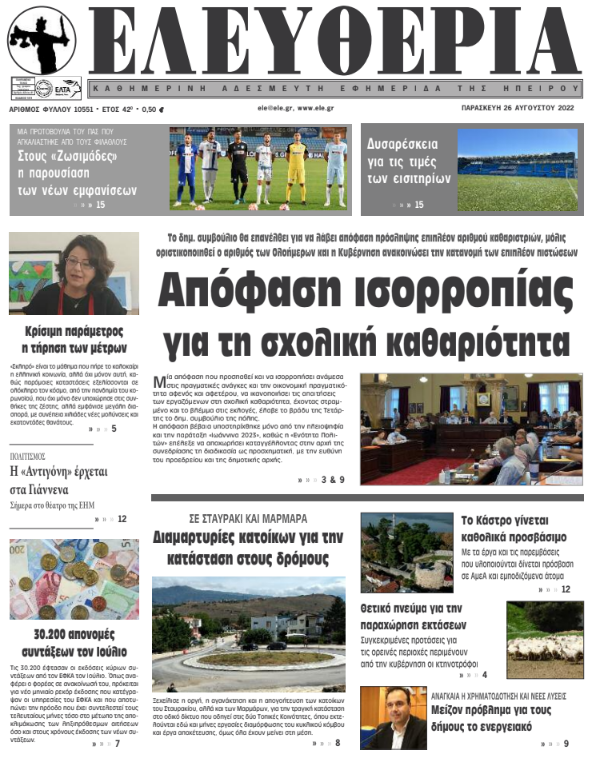 ΑρχικήTOP STORIES TOP STORIESΗΠΕΙΡΟΣ Τα πρωτοσέλιδα των γιαννιώτικων εφημερίδων 26.08.2022 165 FacebookTwitterWhatsAppEmailΤυπώνωViber Διαβάστε στα πρωτοσέλιδα των γιαννιώτικων εφημερίδων της Παρασκευής 26 Αυγούστου TagsΓΙΑΝΝΙΩΤΙΚΕΣ ΕΦΗΜΕΡΙΔΕΣΠΡΩΤΟΣΕΛΙΔΑ FacebookTwitterWhatsAppEmailΤυπώνωViber Προηγούμενο άρθροΑτρόμητη γιαγιά κέρδισε τον κορωνοϊό σε ηλικία 101 ετών!Επόμενο άρθροΘετικό πνεύμα για την παραχώρηση εκτάσεων ΣΧΕΤΙΚΑ ΑΡΘΡΑ Τα πρωτοσέλιδα των γιαννιώτικων εφημερίδων TOP STORIES 16.01.2026 Τα πρωτοσέλιδα των γιαννιώτικων εφημερίδων ΗΠΕΙΡΟΣ 15.01.2026 Τα πρωτοσέλιδα των γιαννιώτικων εφημερίδων ΗΠΕΙΡΟΣ 14.01.2026 Τα πρωτοσέλιδα των γιαννιώτικων εφημερίδων ΗΠΕΙΡΟΣ 13.01.2026 Τα πρωτοσέλιδα των γιαννιώτικων εφημερίδων ΗΠΕΙΡΟΣ 11.01.2026 Τα πρωτοσέλιδα των γιαννιώτικων εφημερίδων ΗΠΕΙΡΟΣ 09.01.2026 ΣΤΗΝ ΙΔΙΑ ΚΑΤΗΓΟΡΙΑ Περιφέρεια Ηπείρου: Ενημέρωση για τον Καταρροϊκό Πυρετό των προβάτων και τα μέτρα προστασίας ΗΠΕΙΡΟΣ 16.01.2026 Ολλανδία: Αγορά–στόχος για τα Βόρεια Τζουμέρκα με σταθερή εξωστρέφεια ΗΠΕΙΡΟΣ 16.01.2026 Μηλιά Μετσόβου: Ηλικιωμένο ζευγάρι τραυματίστηκε σε φωτιά σε αποθήκη–μαγειρείο ΗΠΕΙΡΟΣ 16.01.2026 Μπλόκο αγροτών για λίγες ώρες στην Εθνική Οδό Ιωαννίνων – Κακαβιάς ΗΠΕΙΡΟΣ 16.01.2026 Αποστρατεύεται ο Χριστόφορος Μπόκας μετά από 35 χρόνια στο Πυροσβεστικό Σώμα ΗΠΕΙΡΟΣ 16.01.2026 Αντιπαράθεση στην Περιφερειακή Επιτροπή ΗΠΕΙΡΟΣ 16.01.2026 ΜΗ ΧΑΣΕΤΕ Μπλόκο αγροτών για λίγες ώρες στην Εθνική Οδό Ιωαννίνων – Κακαβιάς Υπουργείο Εσωτερικών – Φέρνει ρύθμιση – «ταφόπλακα» για τις σχολικές επιτροπές Αντιπαράθεση στην Περιφερειακή Επιτροπή Σε αναζήτηση εναλλακτικής για τα βυτιοφόρα στην Εγνατία Τα πρωτοσέλιδα των γιαννιώτικων εφημερίδων ΔΗΜΟΦΙΛΗ Νέα Ζηλανδία: Προσωρινό κλείσιμο της πρεσβείας στην Τεχεράνη και μεταφορά λειτουργιών στην Άγκυρα Σε αναζήτηση εναλλακτικής για τα βυτιοφόρα στην Εγνατία Αντιπαράθεση στην Περιφερειακή Επιτροπή Τα του Καίσαρος… Μηλιά Μετσόβου: Ηλικιωμένο ζευγάρι τραυματίστηκε σε φωτιά σε αποθήκη–μαγειρείο