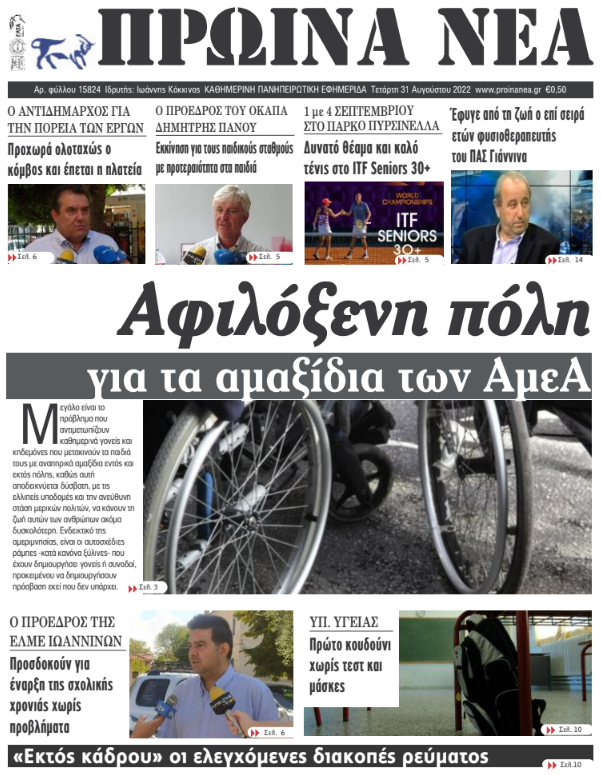 Διαβάστε στα πρωτοσέλιδα των γιαννιώτικων εφημερίδων της Τετάρτης 31 Αυγούστου